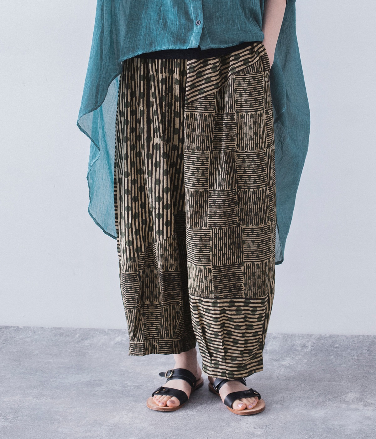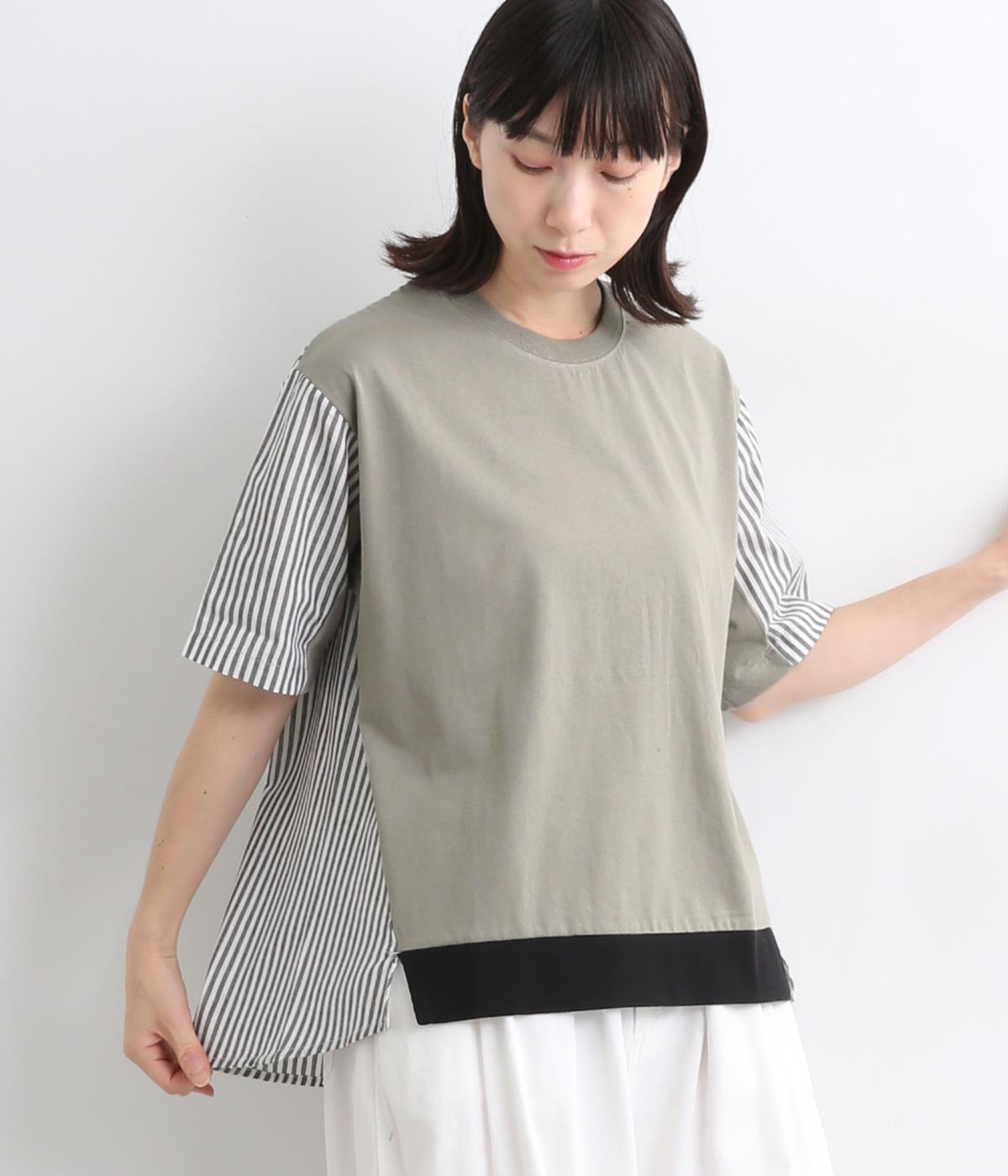 コットン平織日本製品染前後2wayティアード長袖ブラウスカーキベージュ