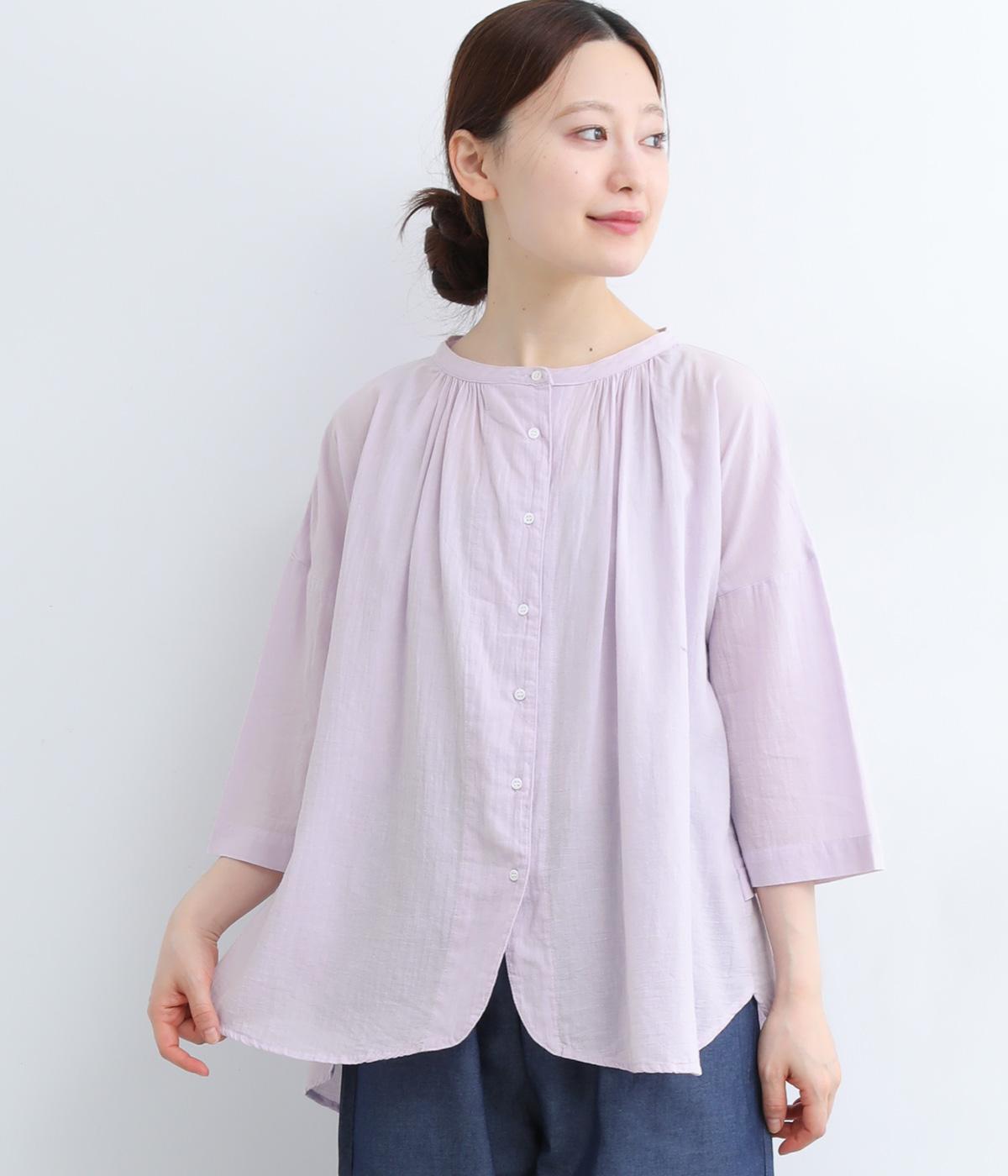 コットンワッシャーストライプクレリックブラウスブルー