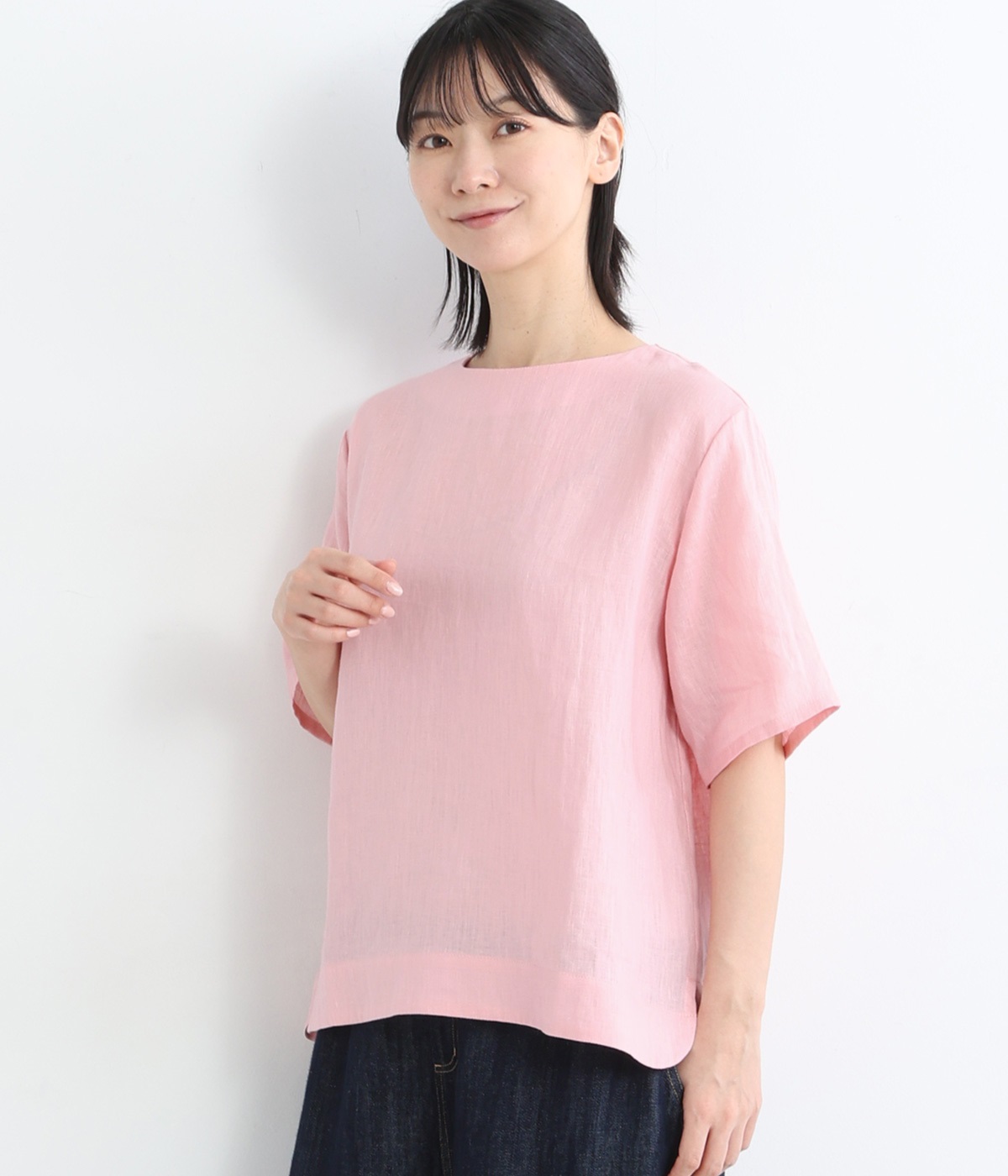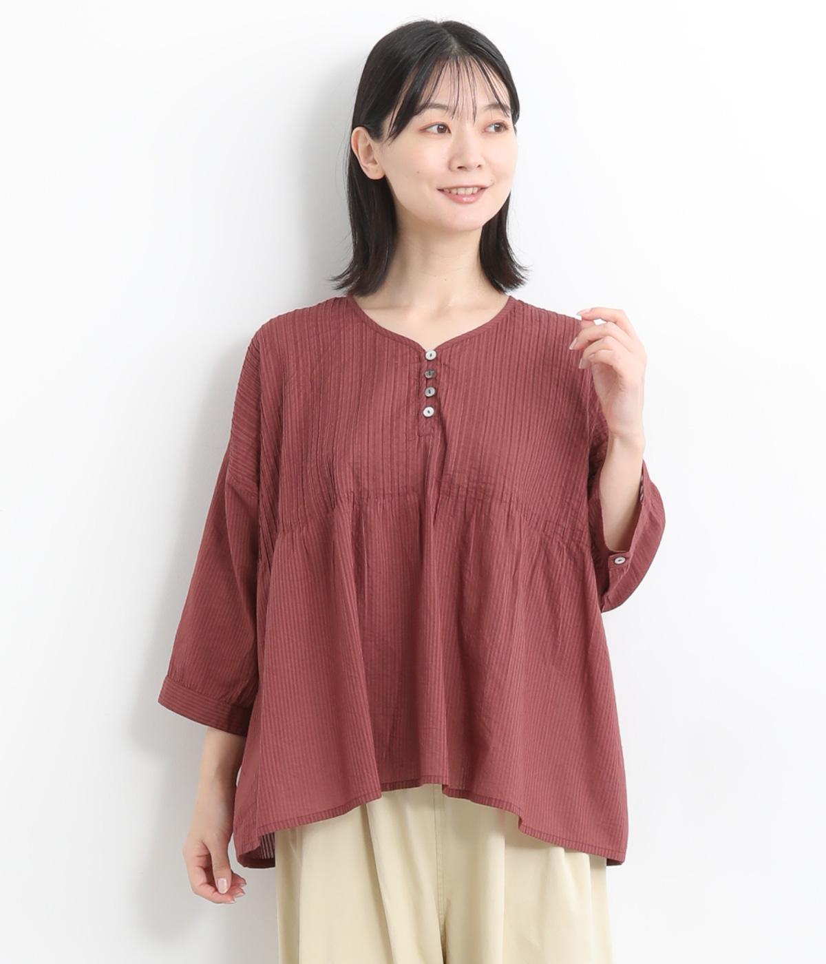 コットンポリエステル平織起毛9分袖ブラウスグレージュ