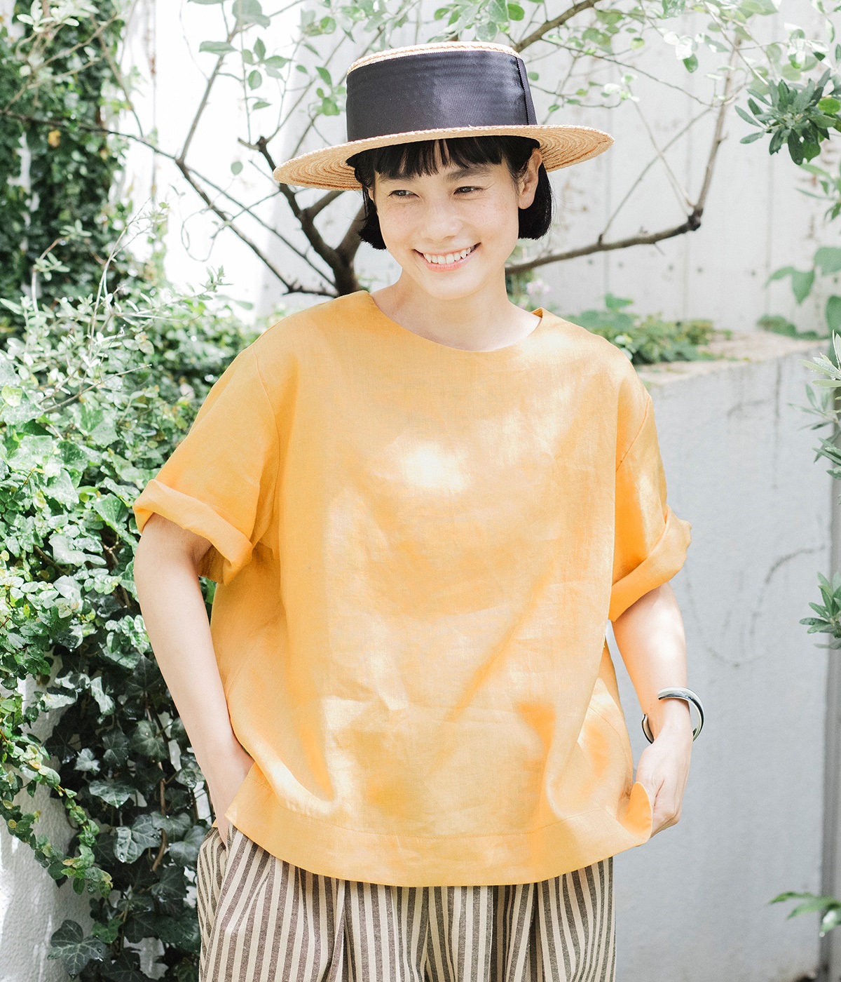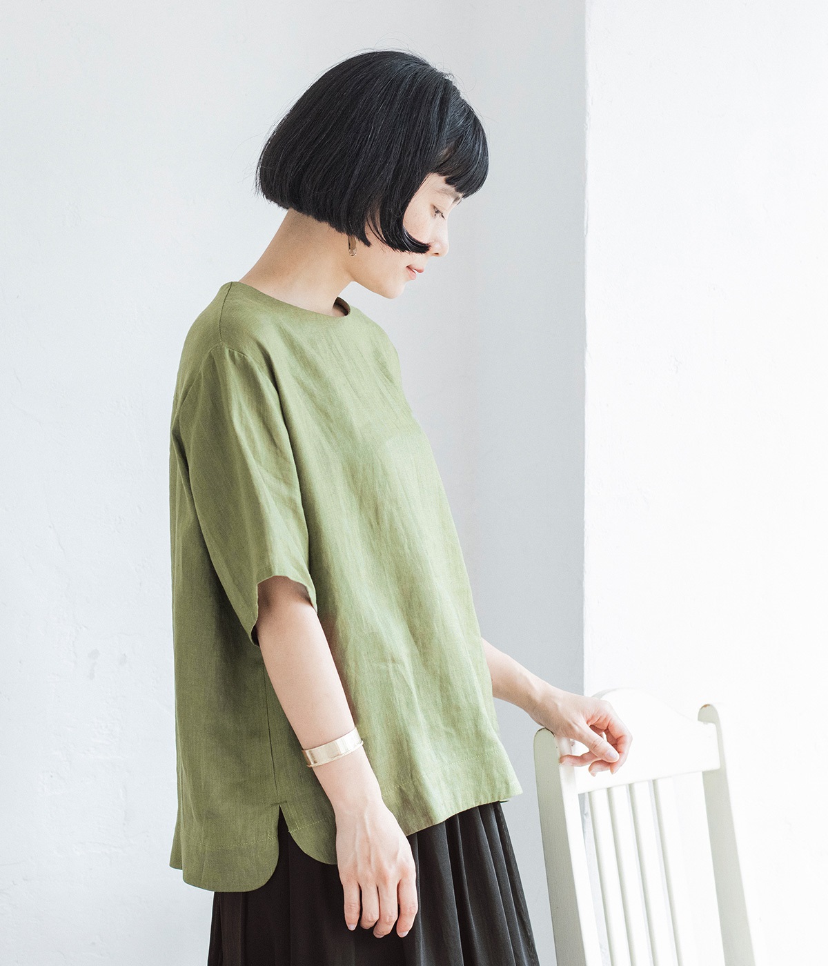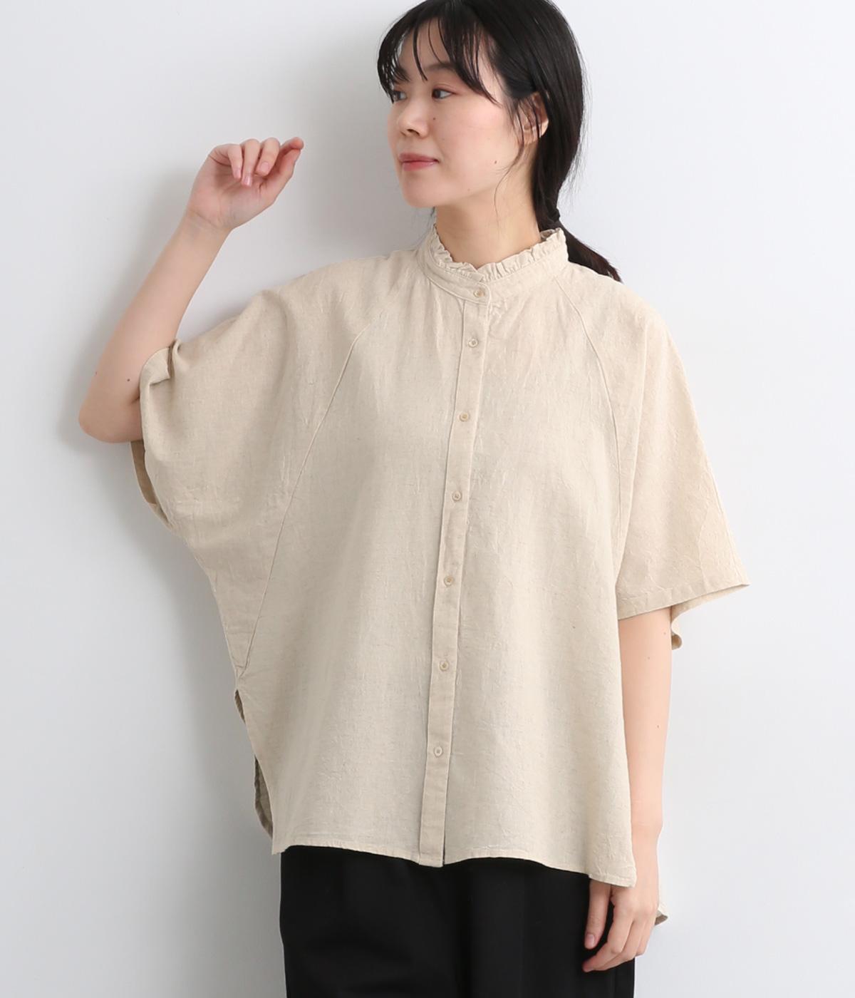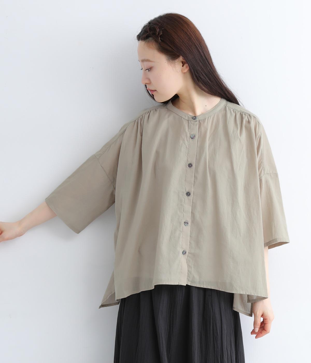 コットン平織日本製品染長袖ブラウスカーキベージュ