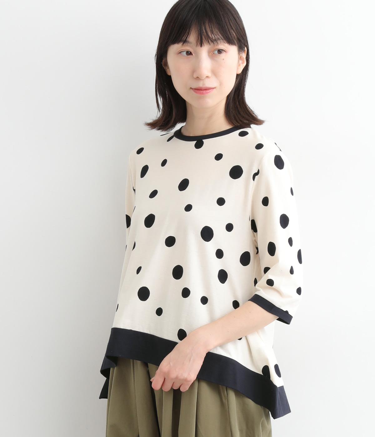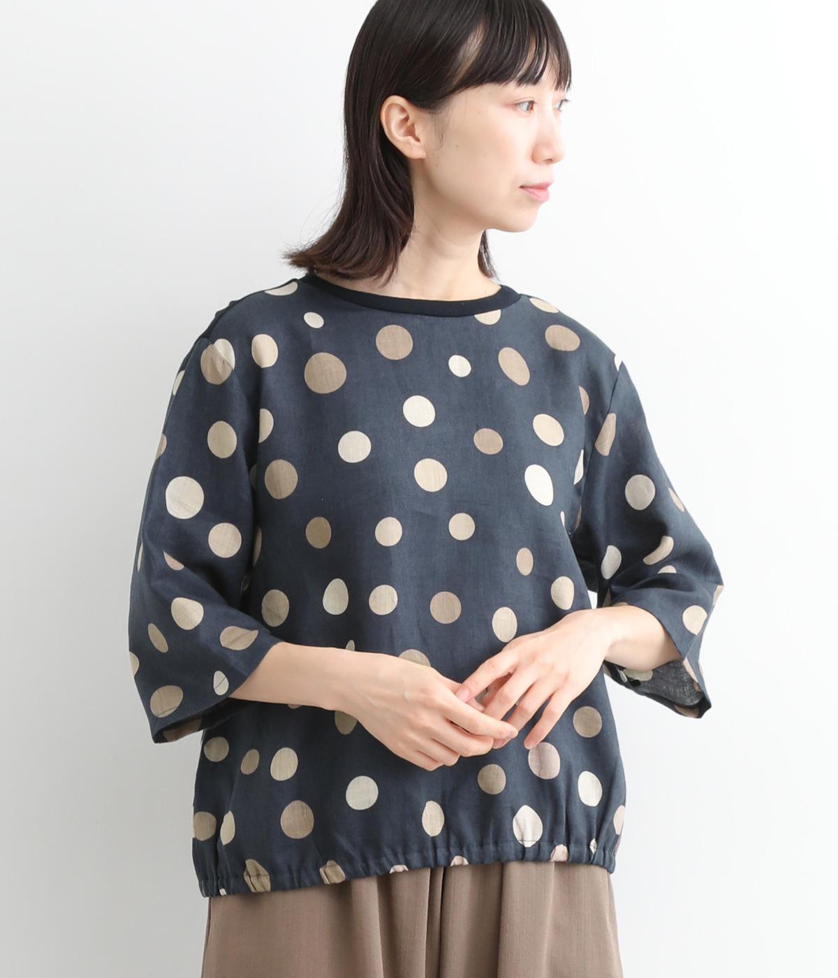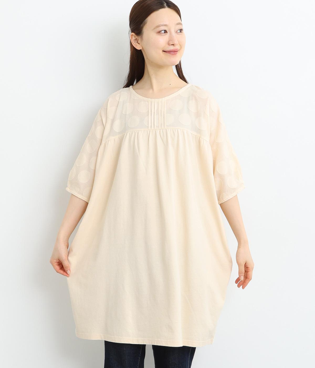 ポリエステルツイルドットプリント前後2way長袖チュニックブラウスベージュ