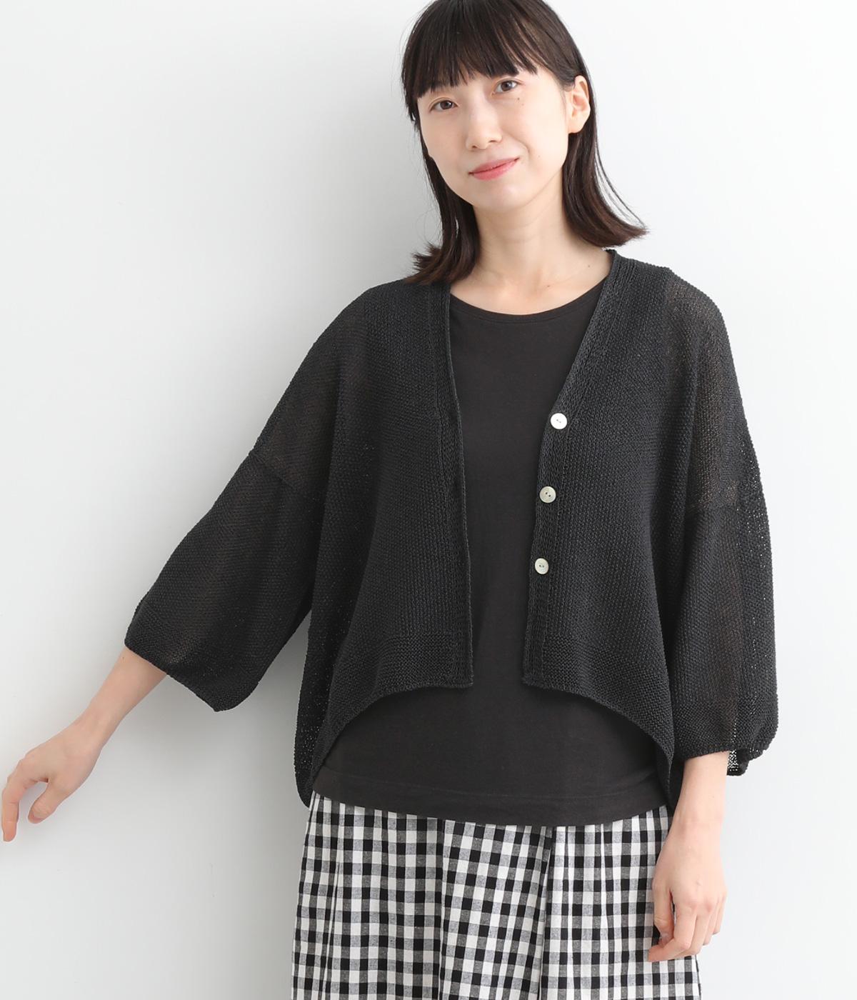 四者混鹿の子編みドルマンニットカーディガンチャコール