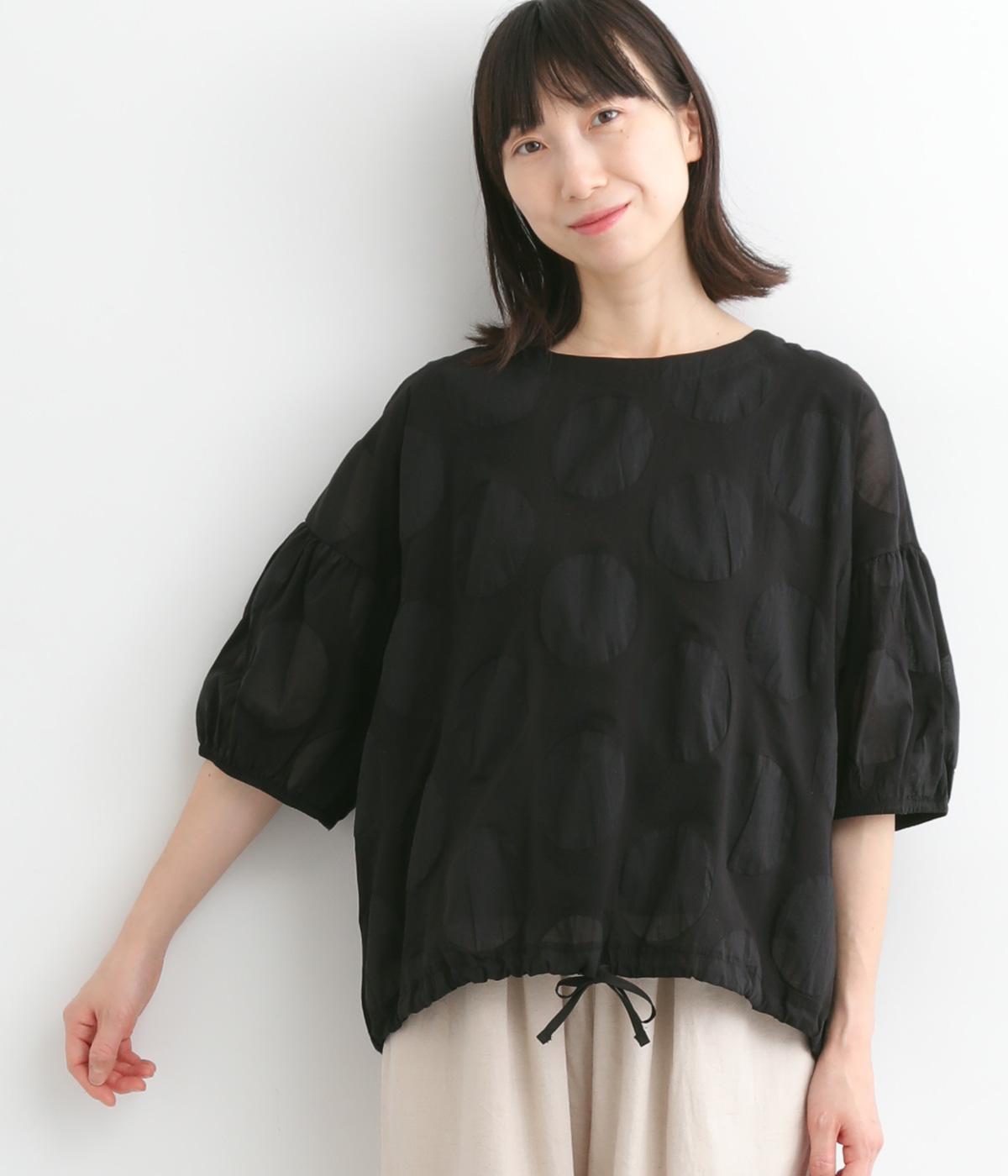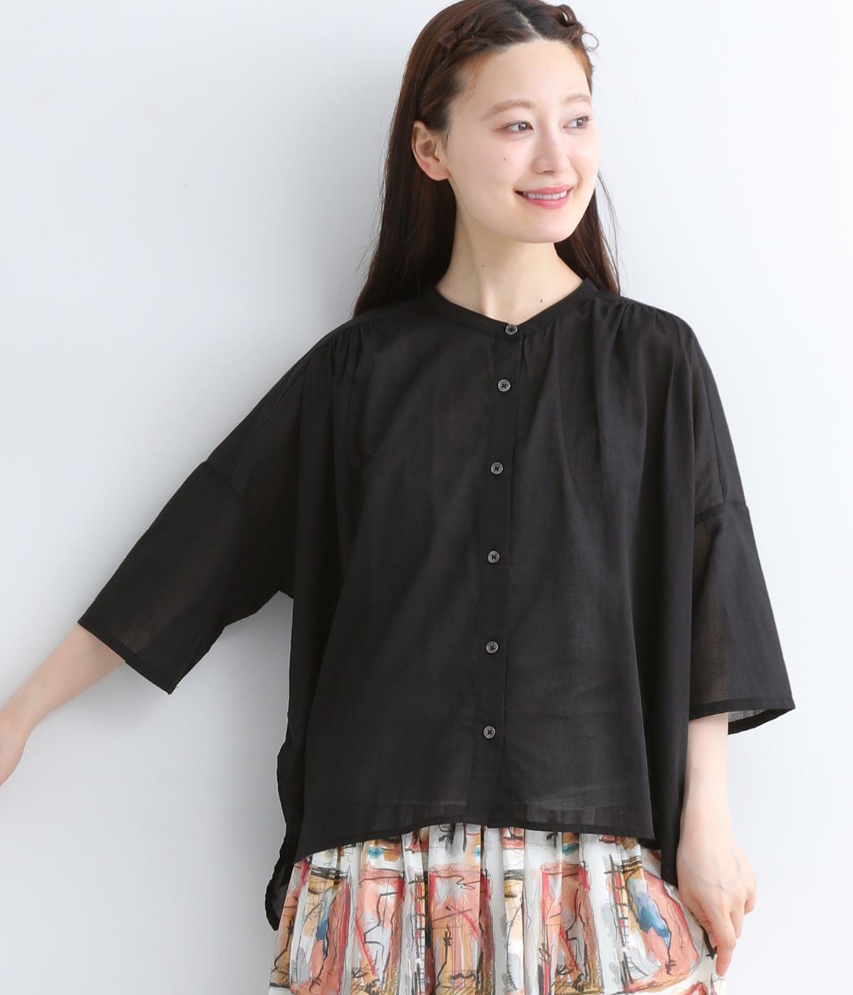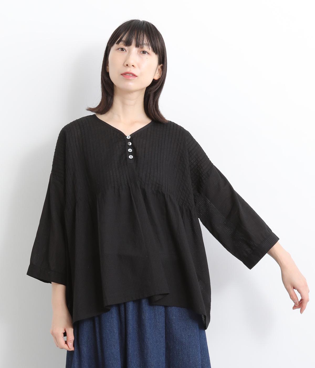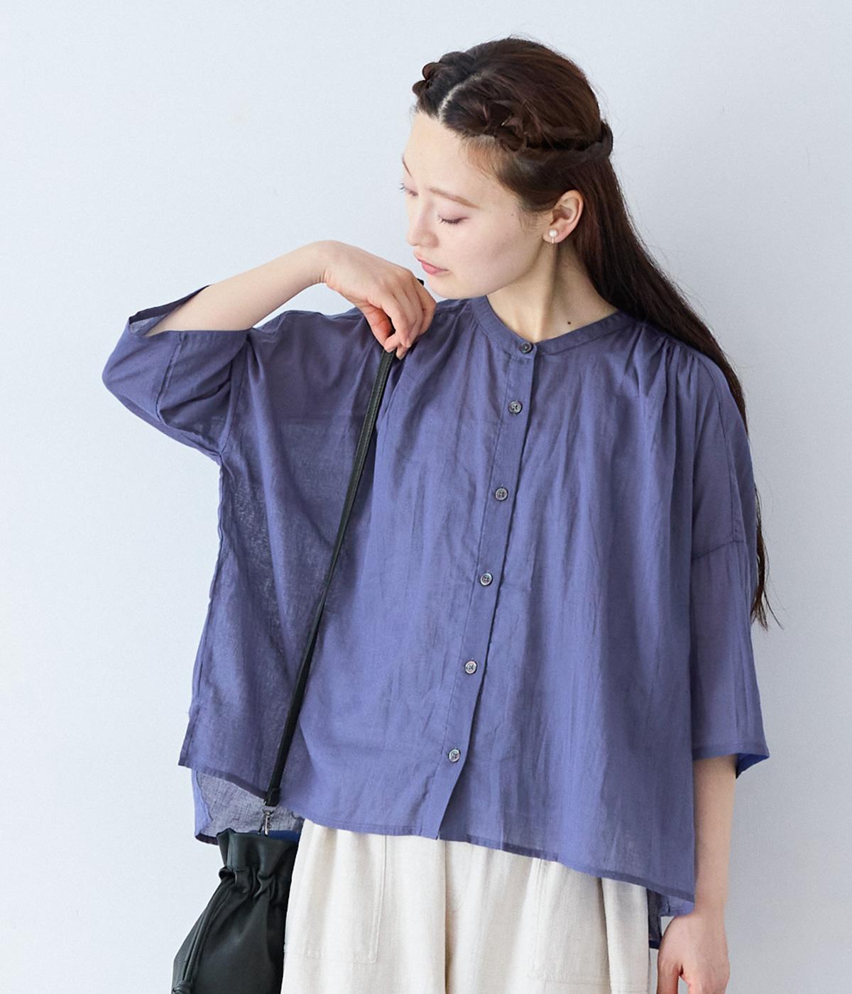 コットン平織日本製品染前後2wayティアード長袖ブラウススミクロ