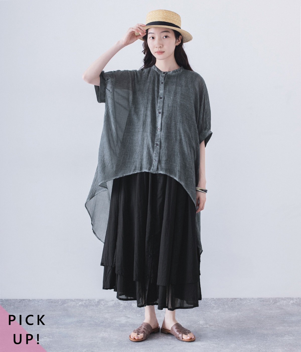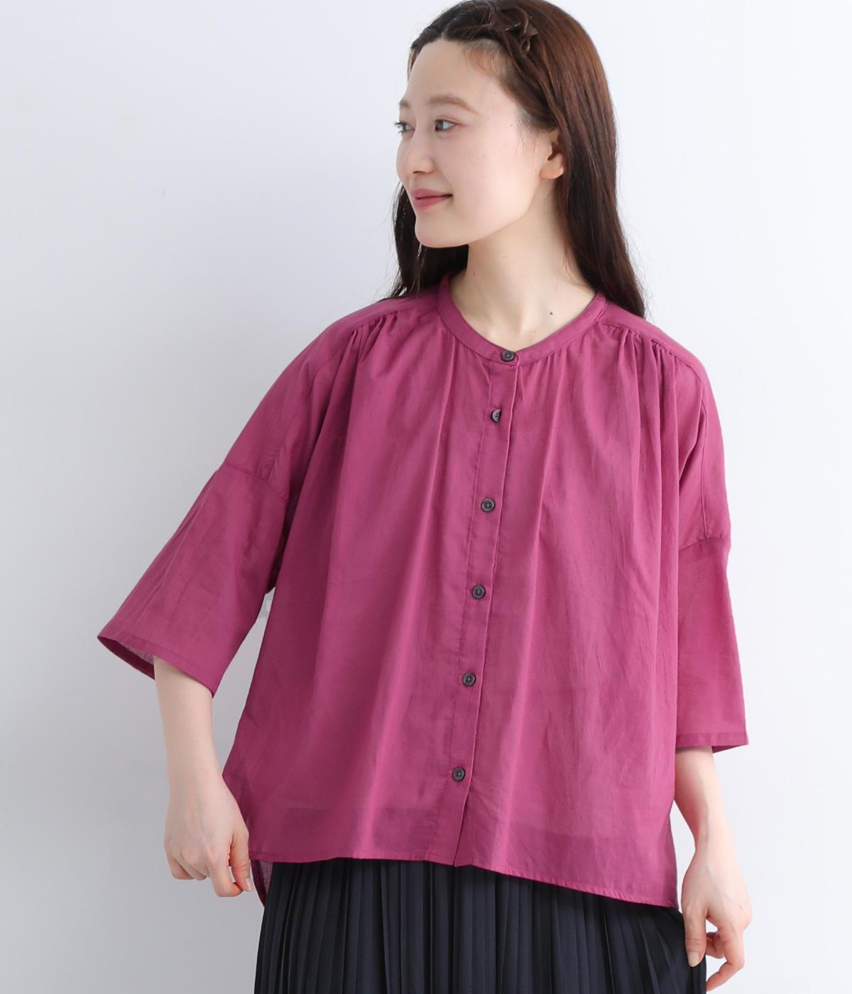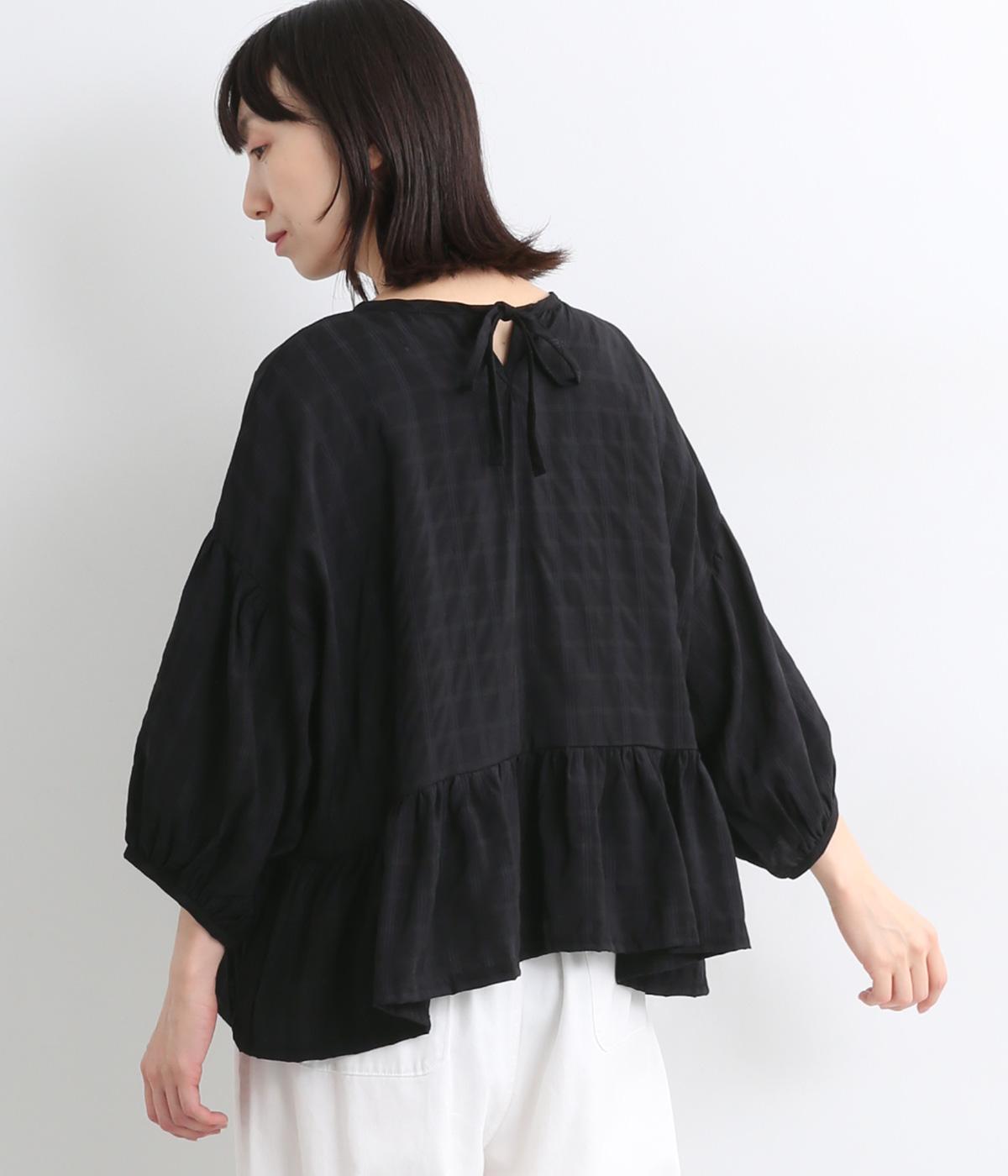 コットン平織日本製品染前後2wayティアード長袖ブラウススミクロ