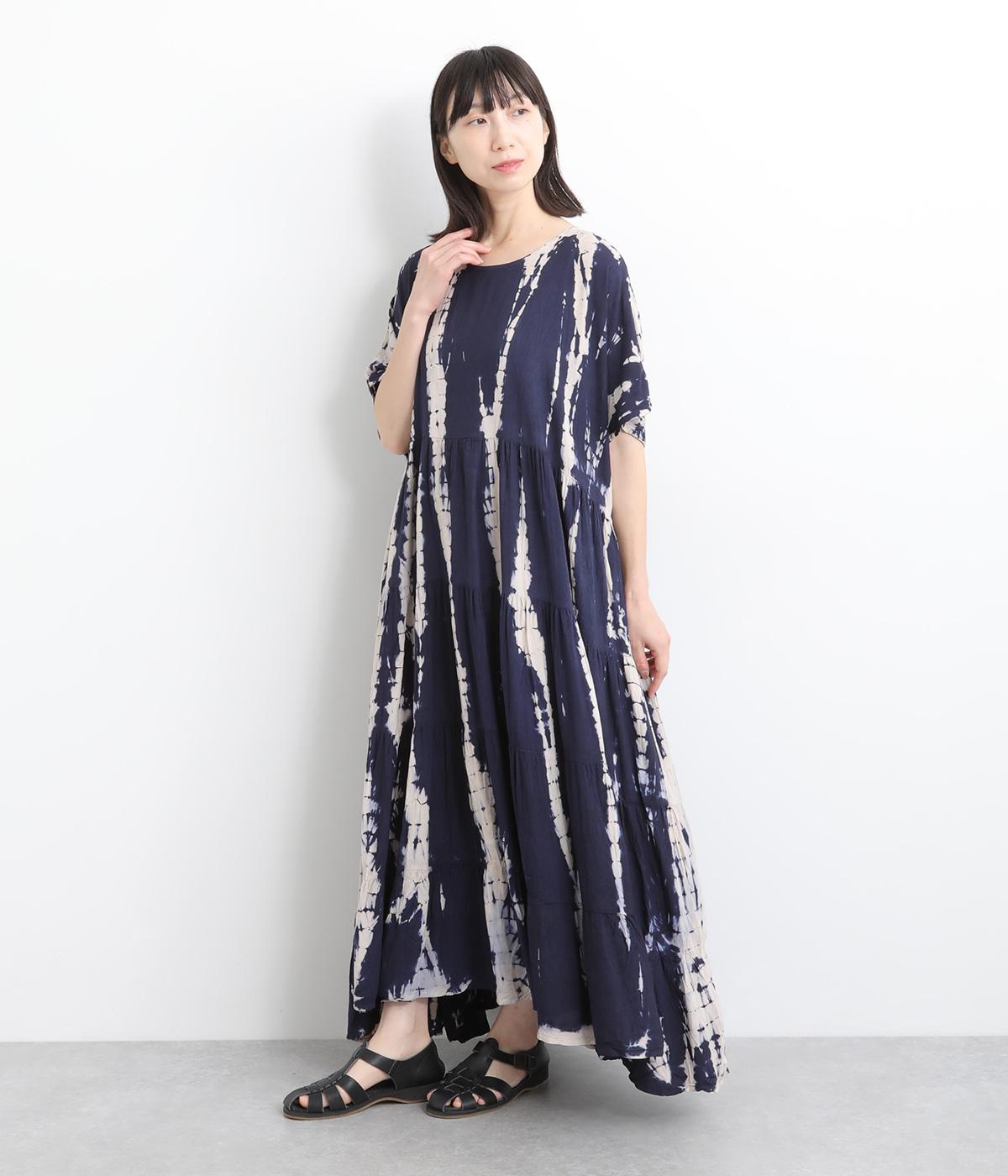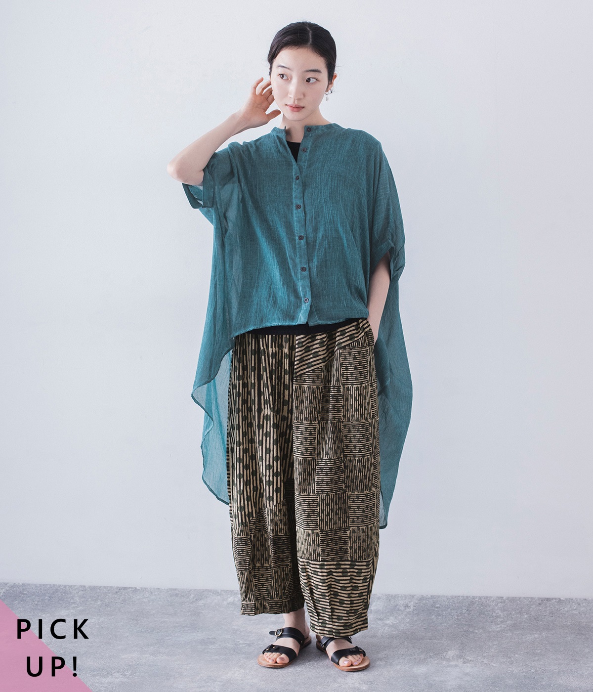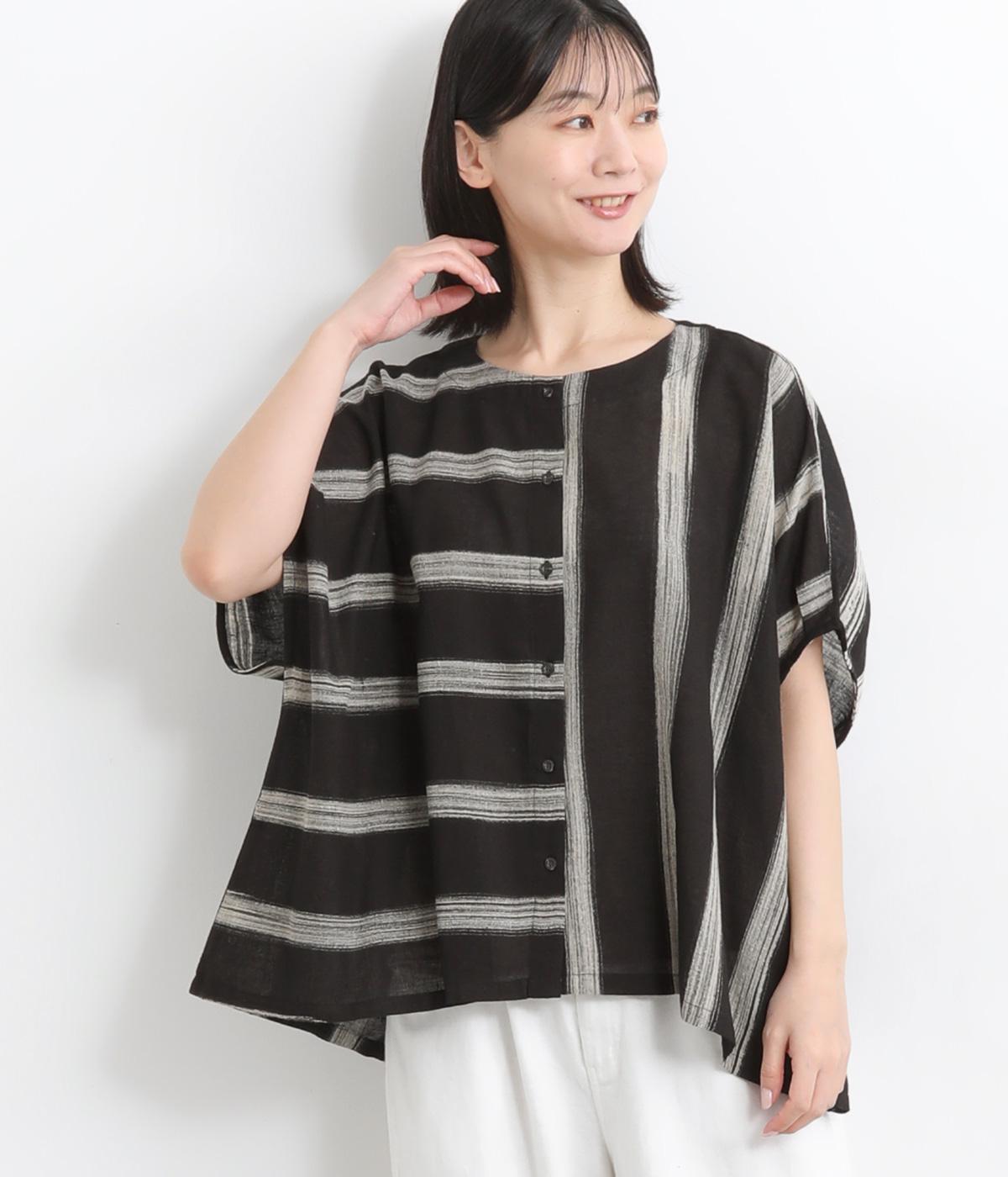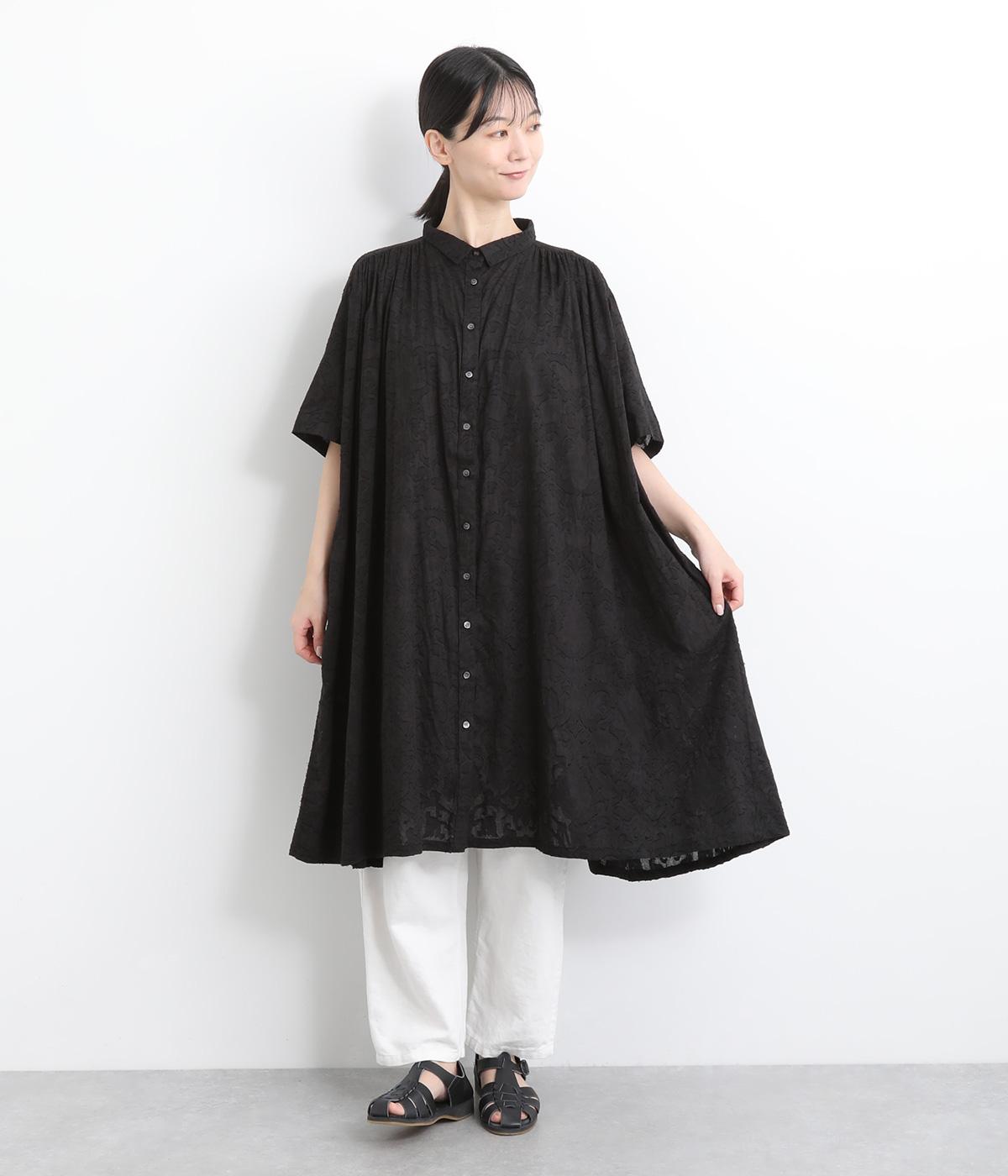 コットン平織日本製品染前後2wayティアード長袖ブラウススミクロ