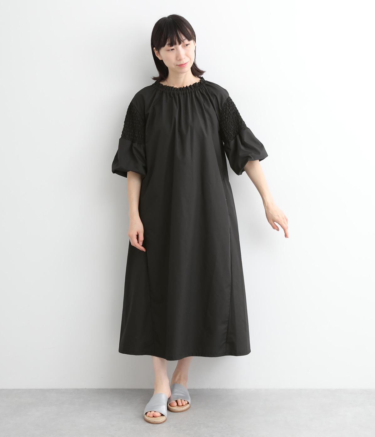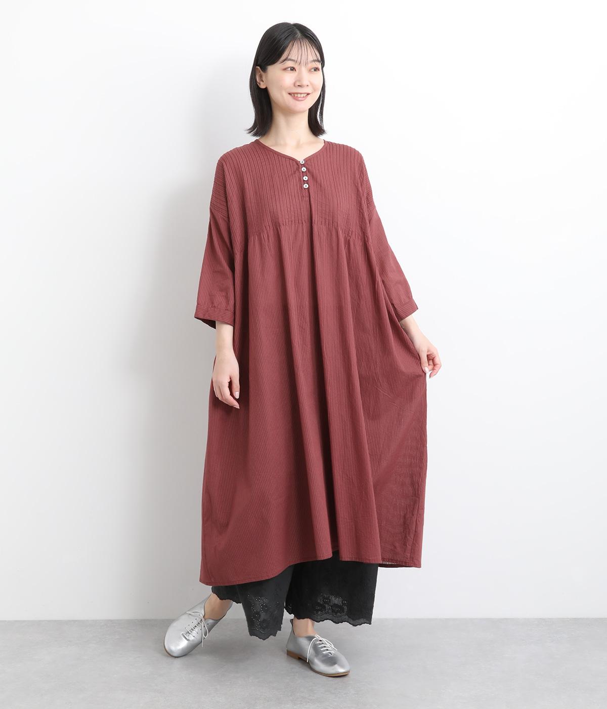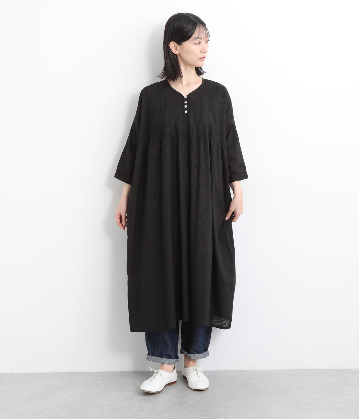 コットン綾起毛ピンタックワンピースチャコールグレー