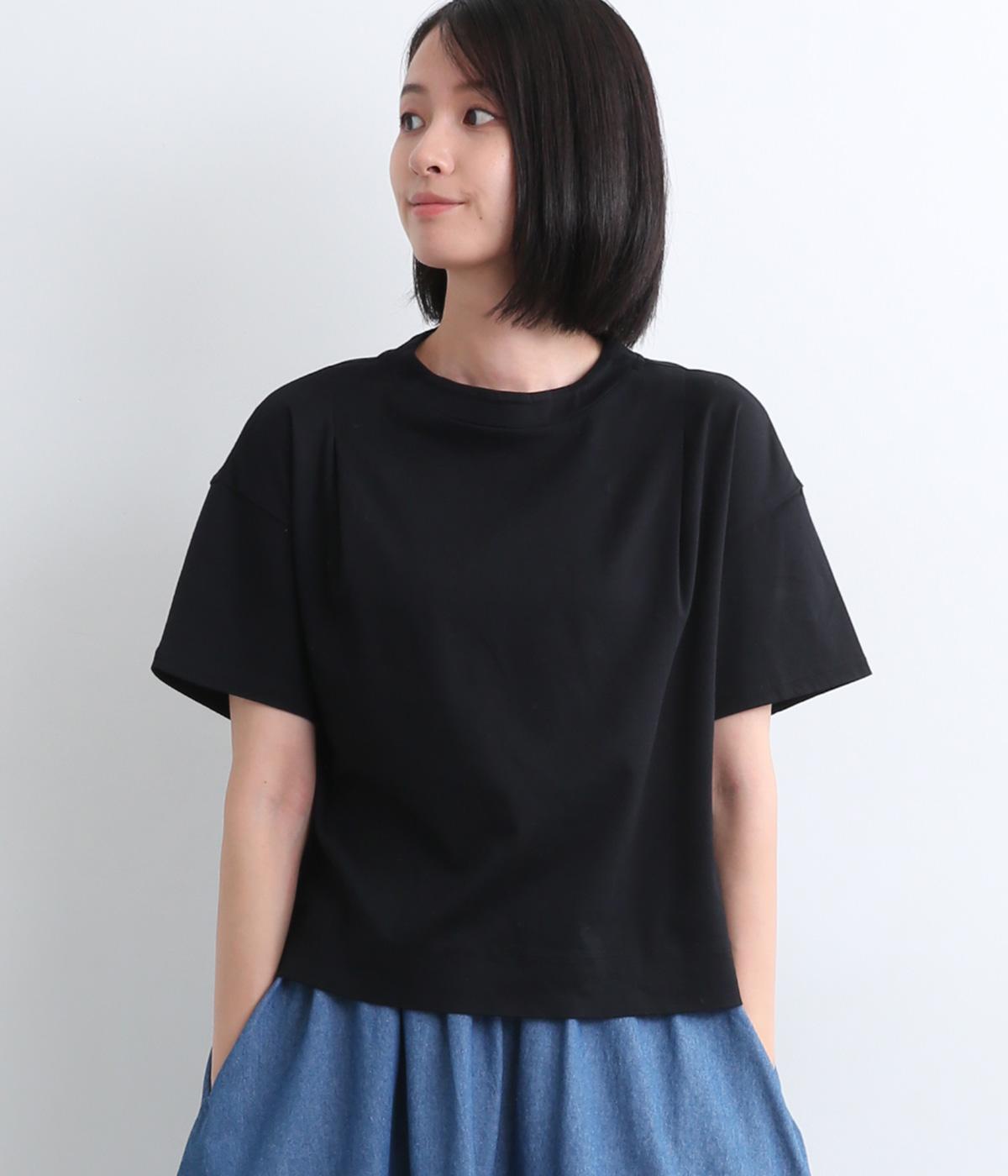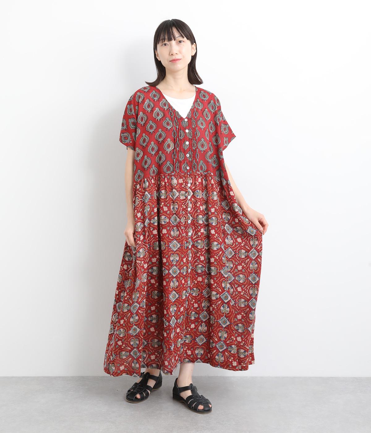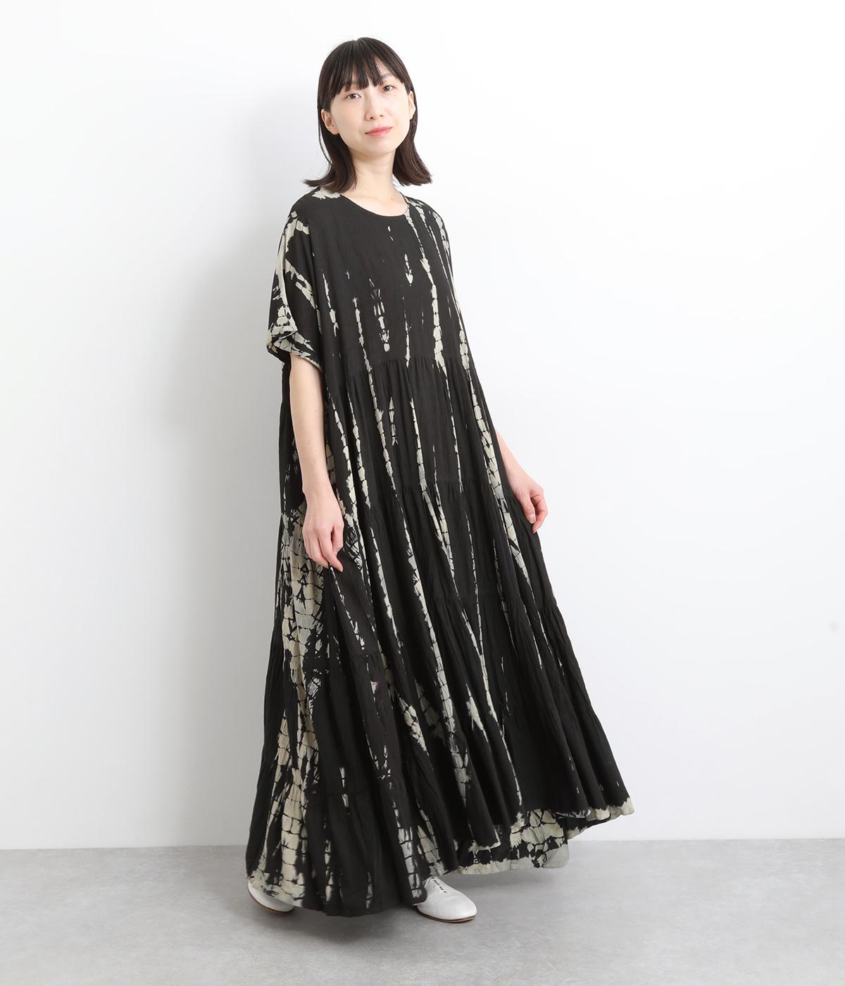 コットン綾起毛ピンタックワンピースチャコールグレー