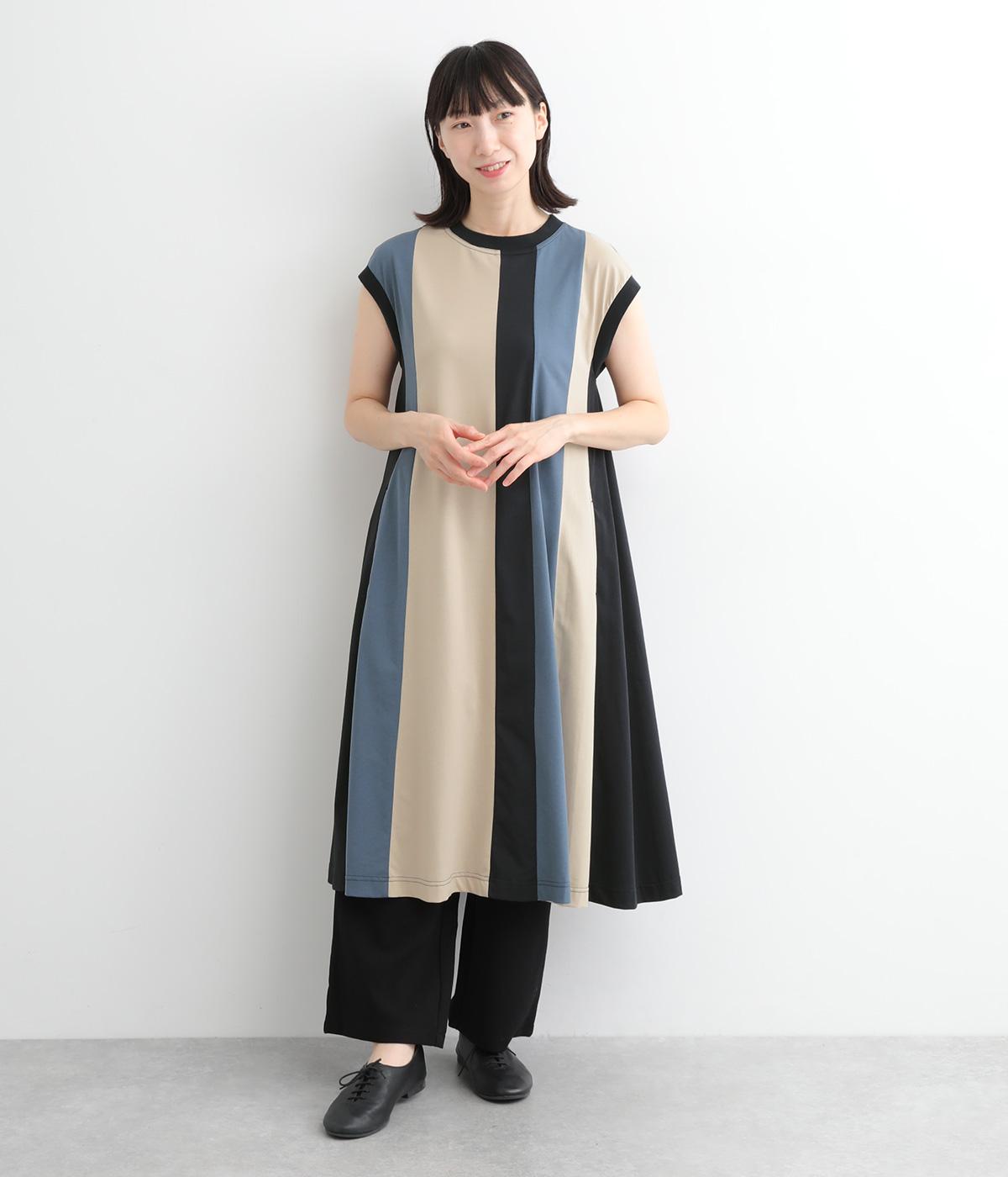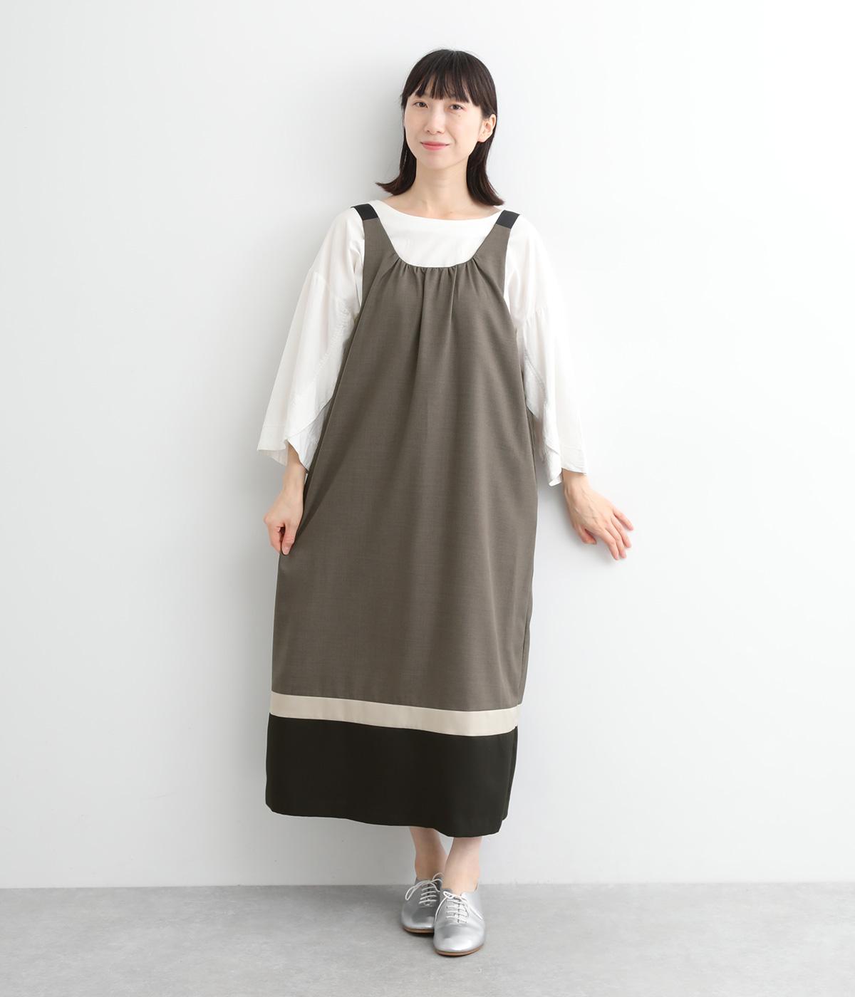 ウール混TRダブルフェイス前後2wayワンピース無地カーキベージュ