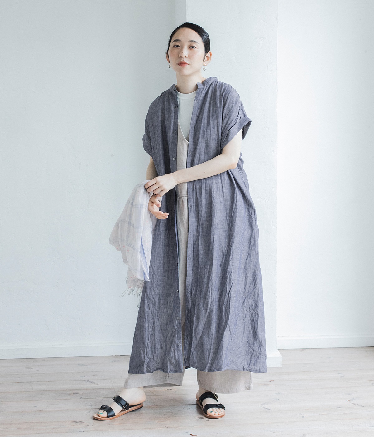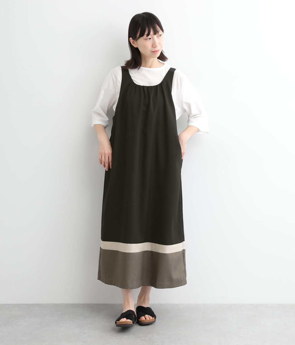 フレンチリネンメロウキャンバス後ろ紐キャミワンピースチャコール