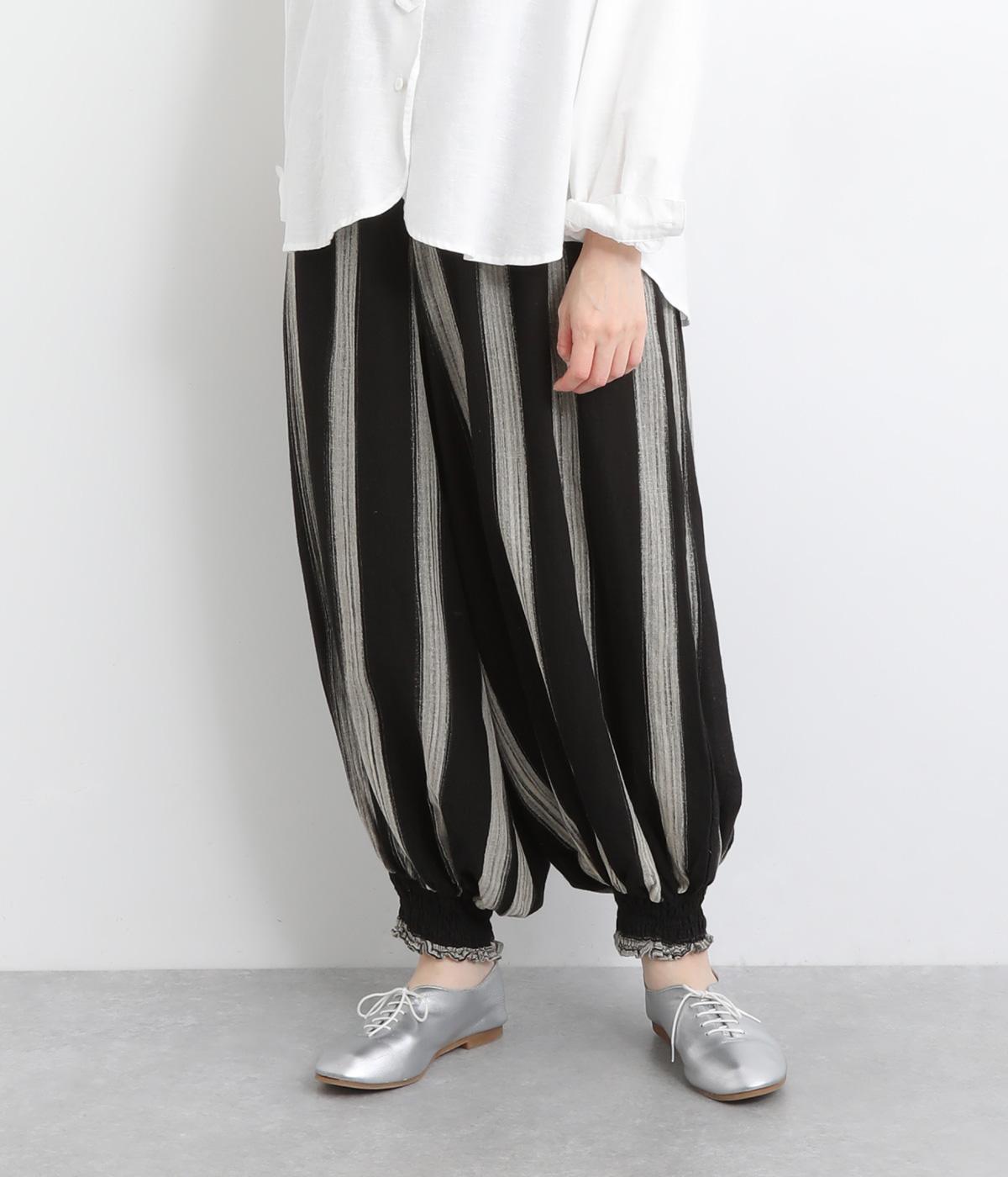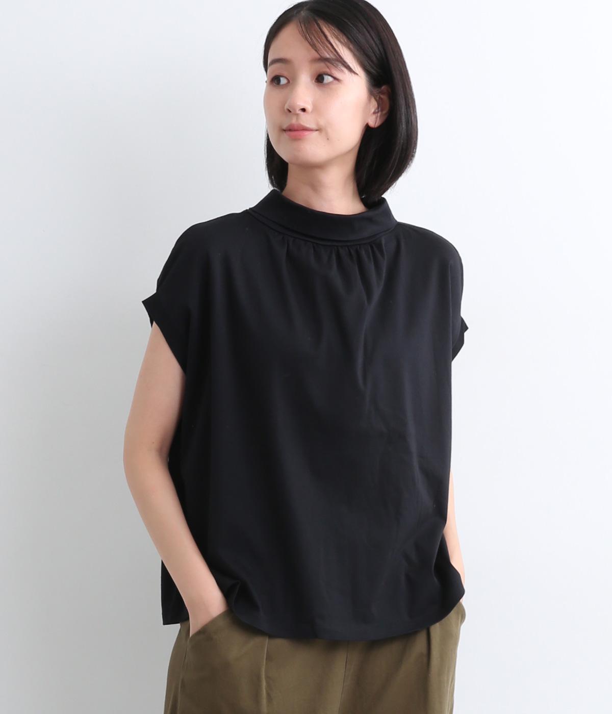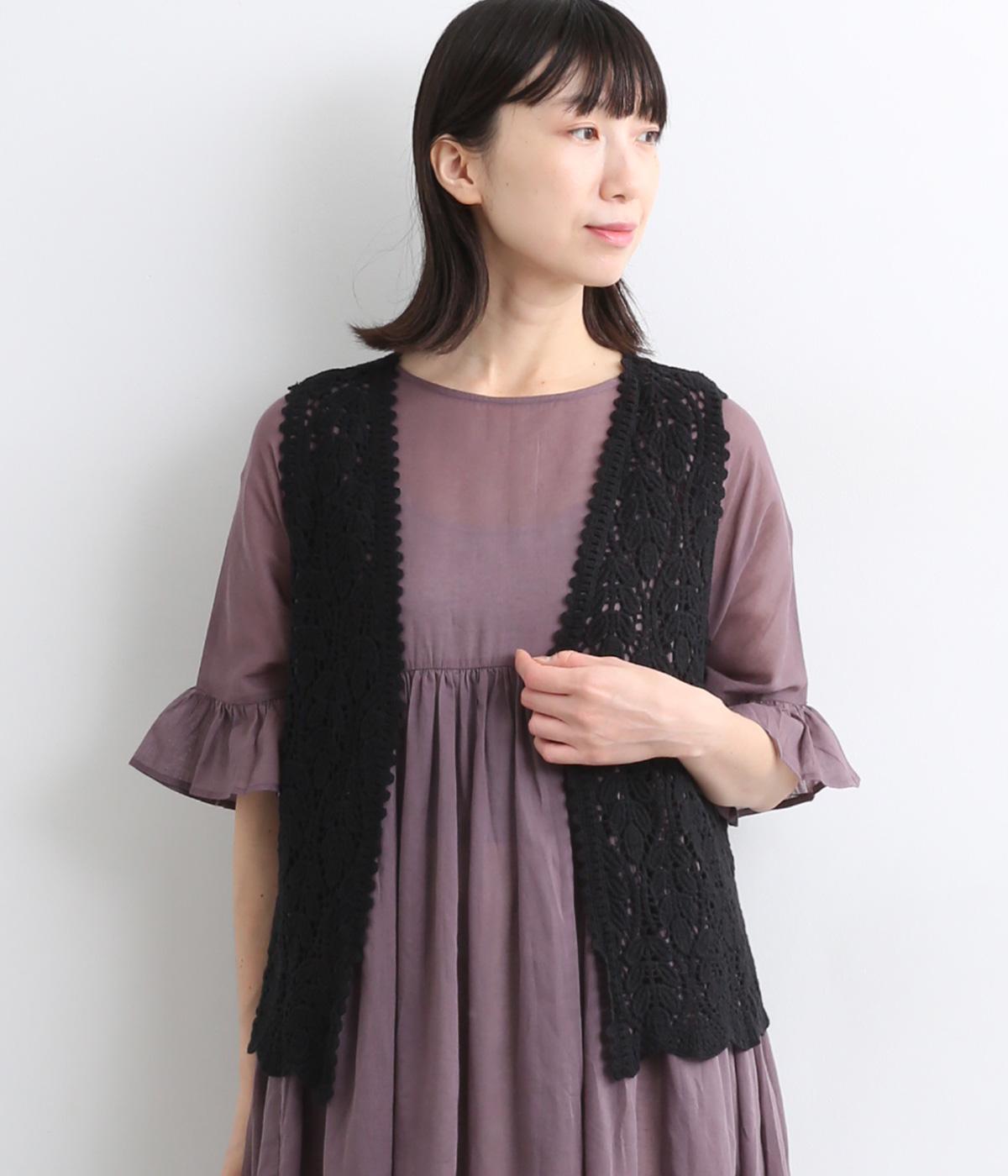 フレンチリネンキャンバスウエスト切替ギャザーベストブラック