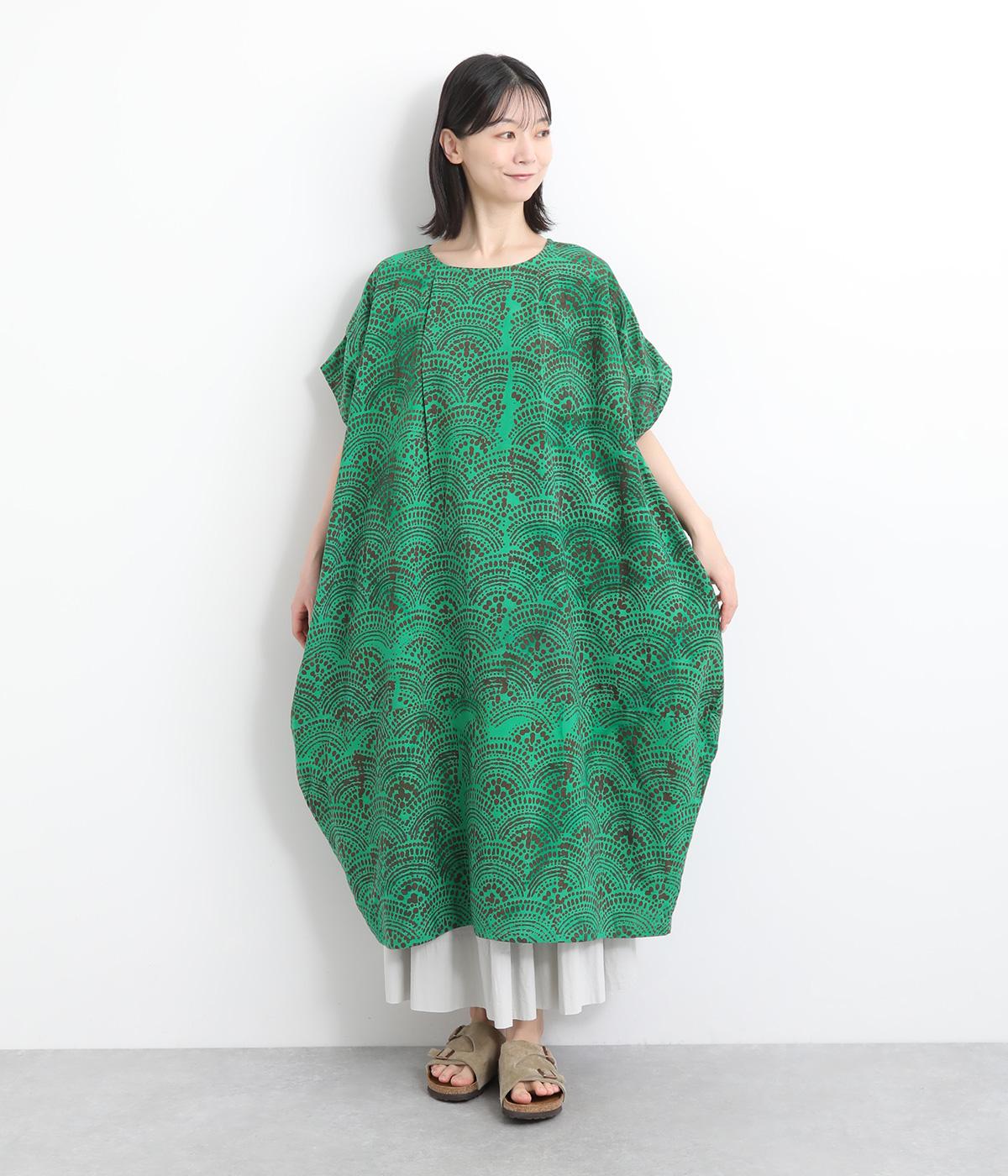 コットンポリエステル平織起毛長袖ワンピースグリーン