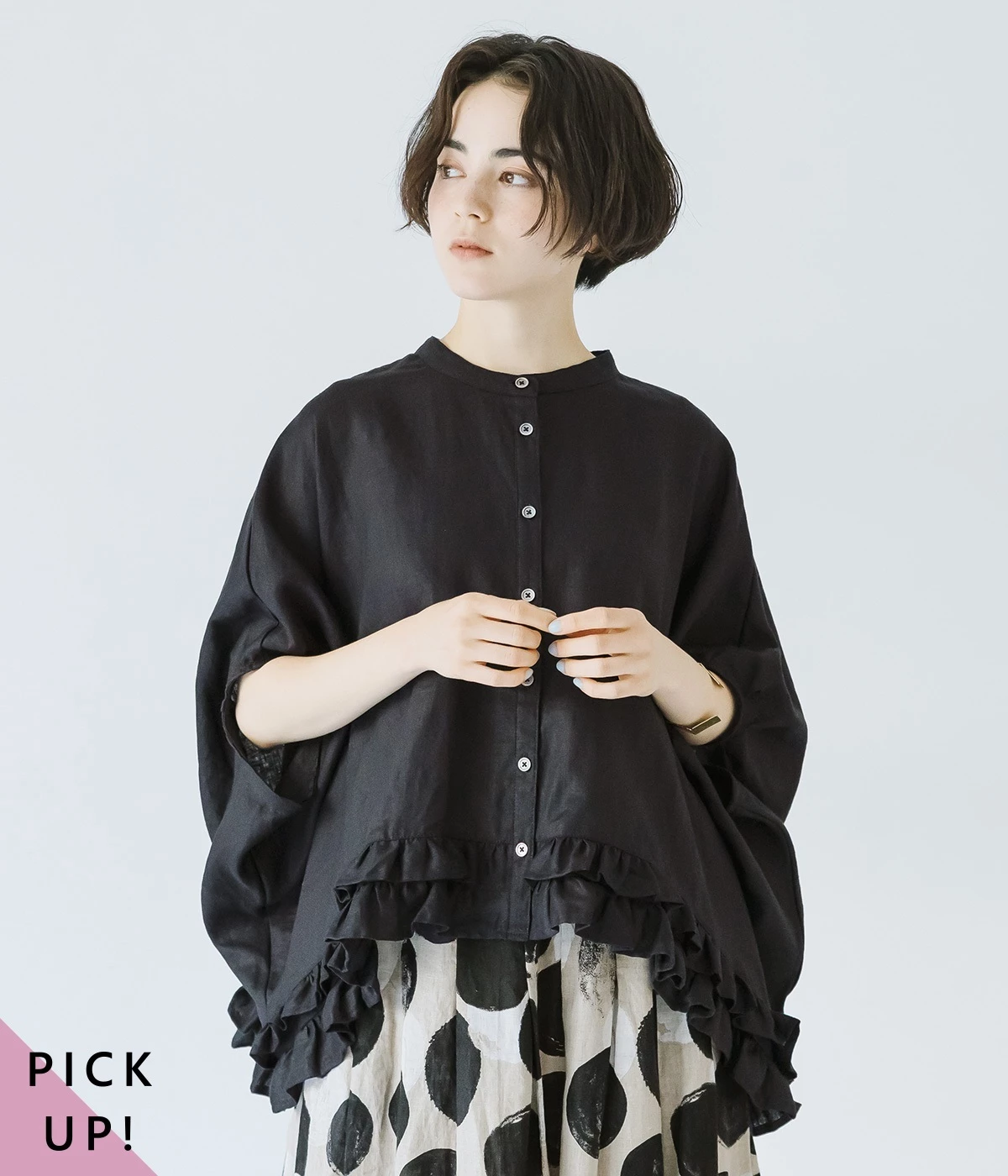 コットン ピンタックシャツブラック