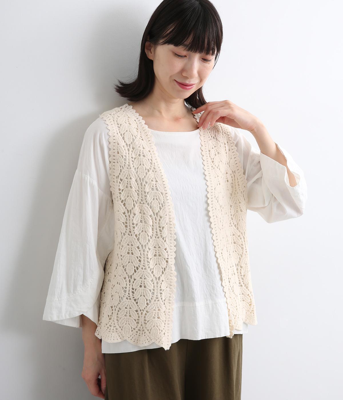 四者混鹿の子編みドルマンニットカーディガンオートミール