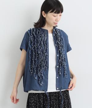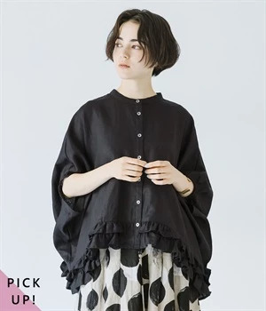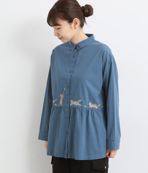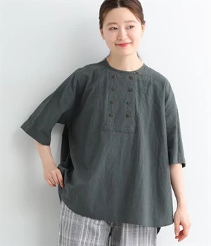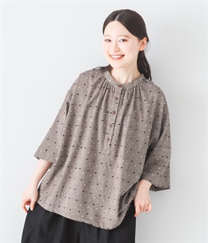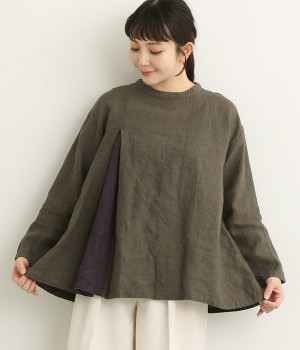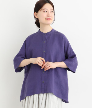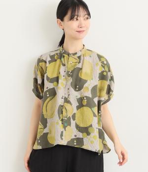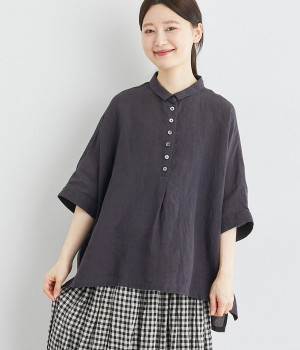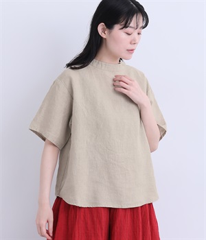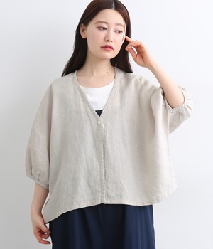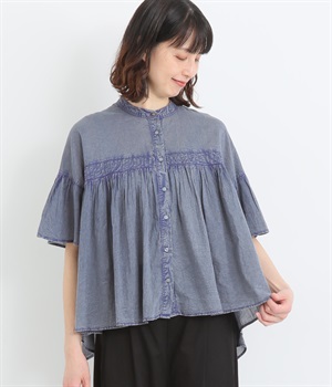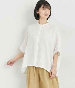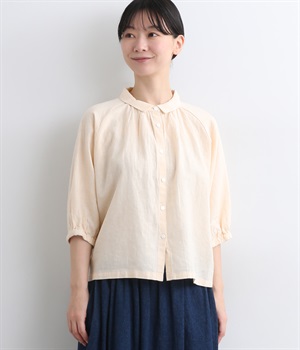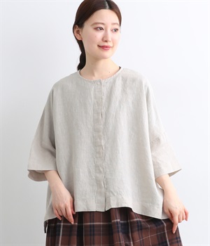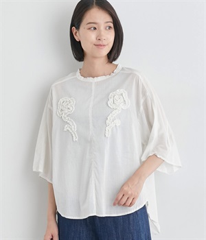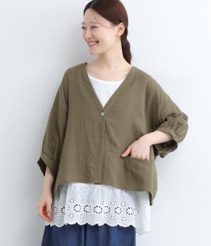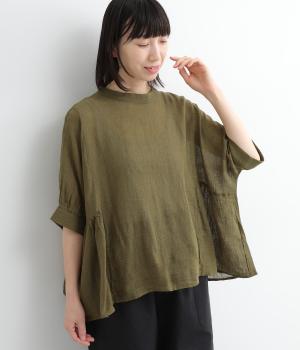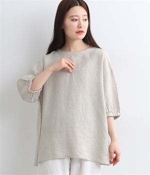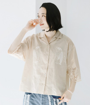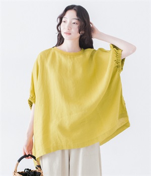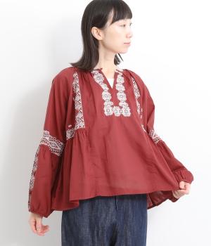 リネン刺繍スリーブブラウス