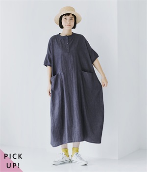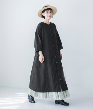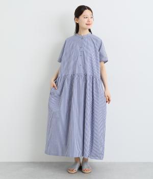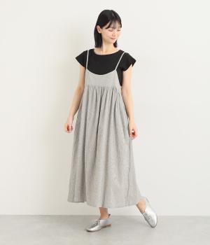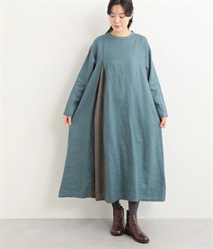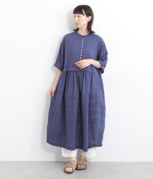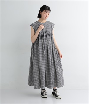 コットンリネンアムンゼンパネルチェックワンピース