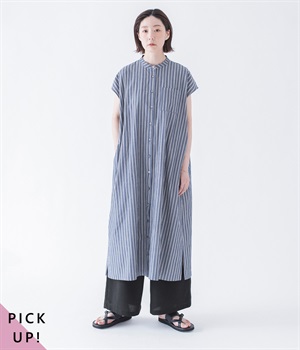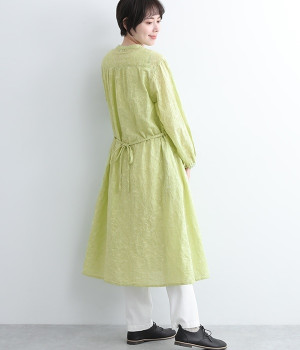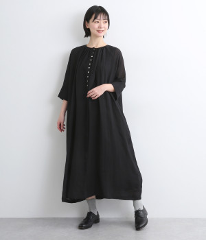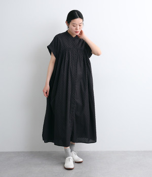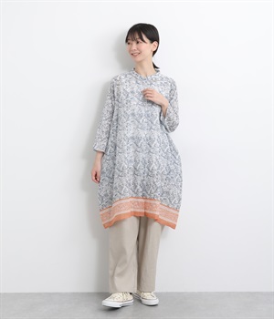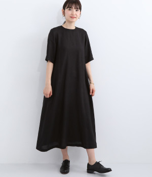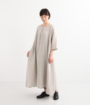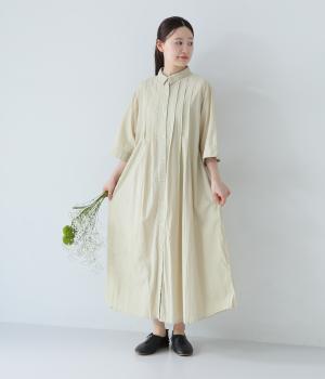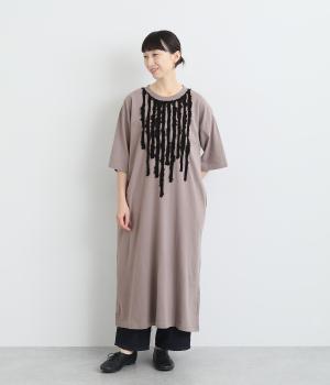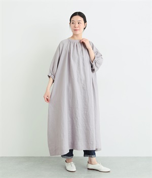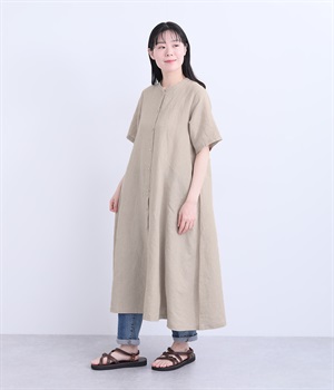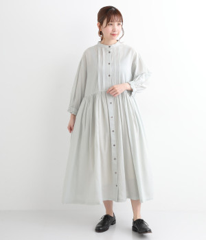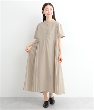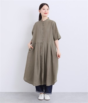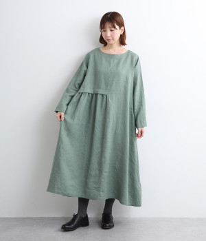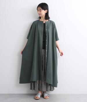 コットンレーヨン起毛ツイルバイオシャーリングネックボックスワンピース