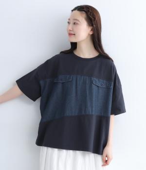 裏毛ニットデニムワイドパンツ