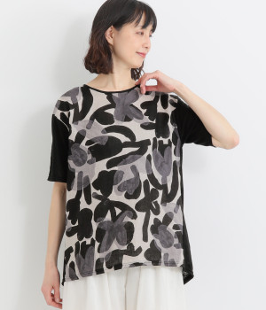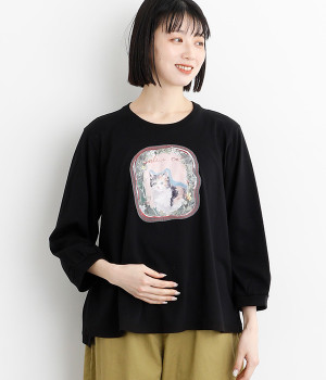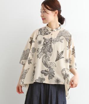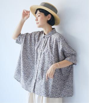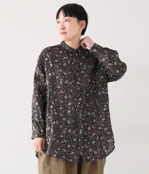 コール天プリントコーデュロイフラワーギャザーブラウス