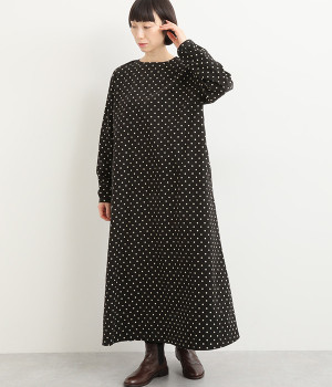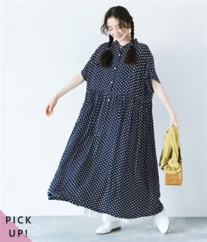 ドット×ゴールドプリントワンピース