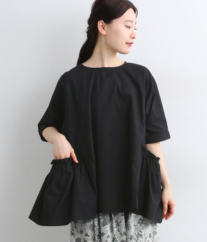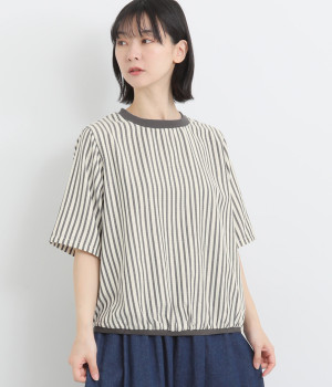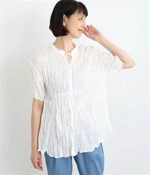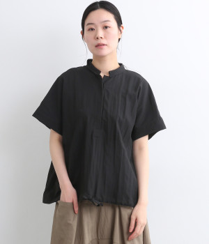コットンTOP糸ダブルガーゼ ネックギャザープルオーバ