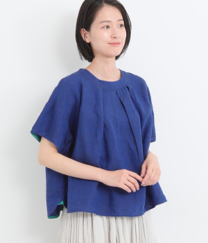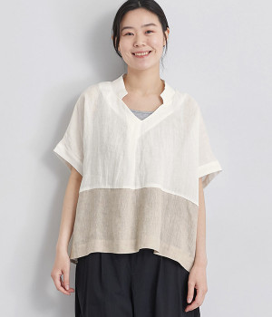 コットンリネン平織 2wayドルマンワイドブラウス