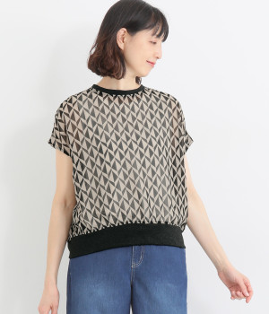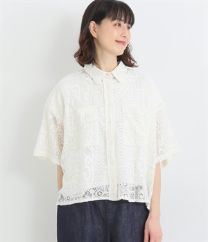 カットワークレーススリーブブラウス