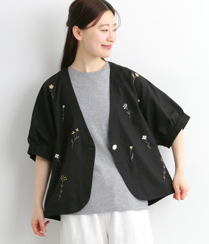 花刺繍ハイネックカーディガン