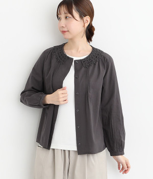 コットン平織微起毛 フリル襟・袖ブラウス