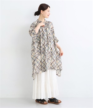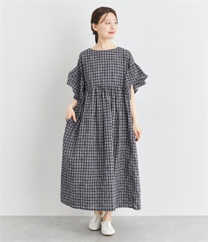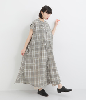 ポリエステルコットン綾織起毛チェック柄長袖ワンピース