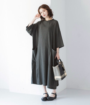 別注|コットンリネン起毛ボリューム袖ワンピース