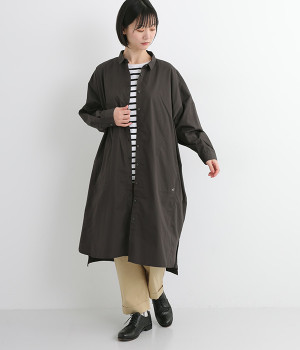 コットンレーヨン表起毛スタンドカラーギャザーワンピース
