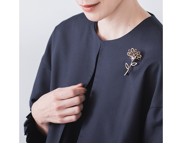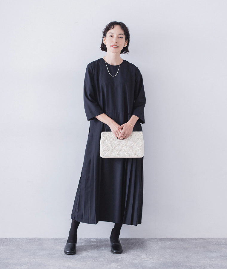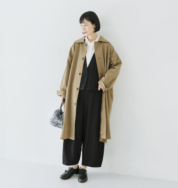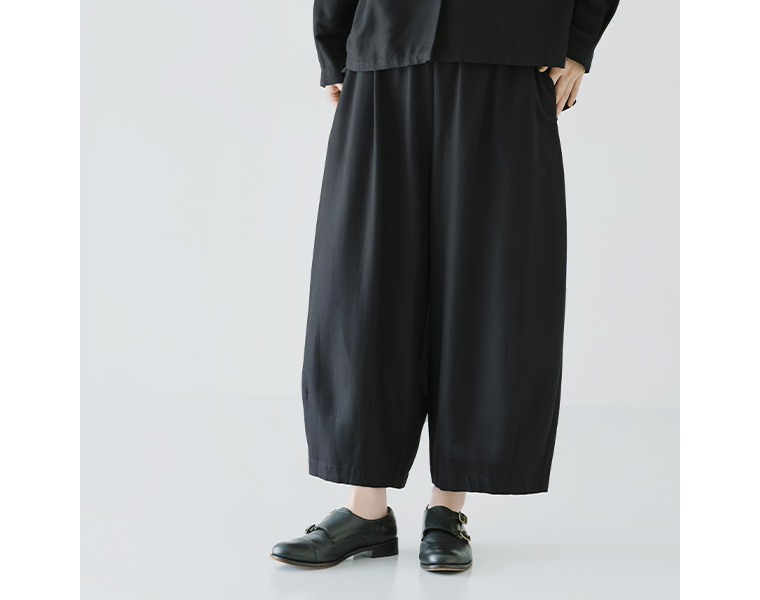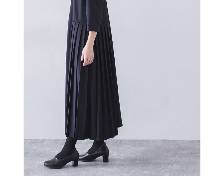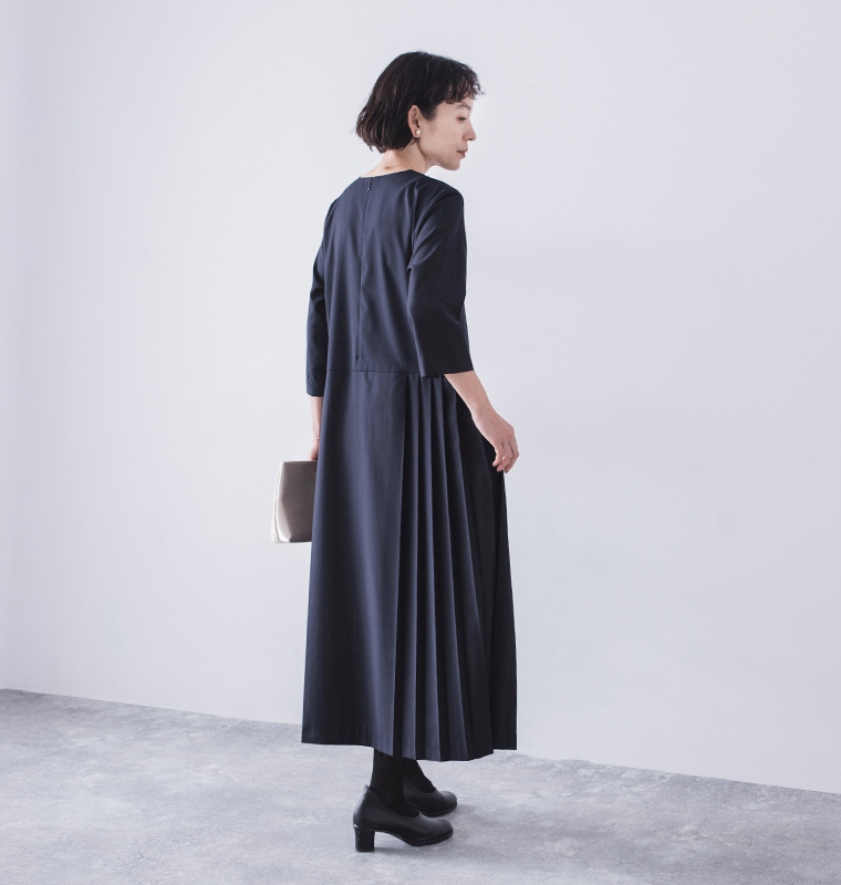 丁寧に寄せたプリーツが、歩くたびにやさしく揺れて、ふんわりと。光の加減で変わる陰影が、表情に深みを与えてくれます。