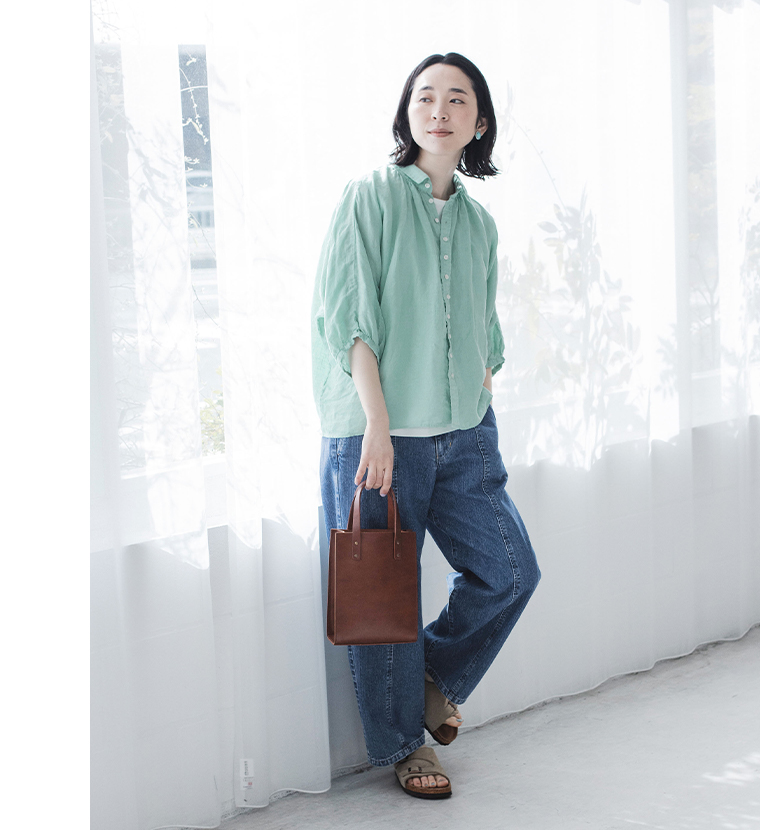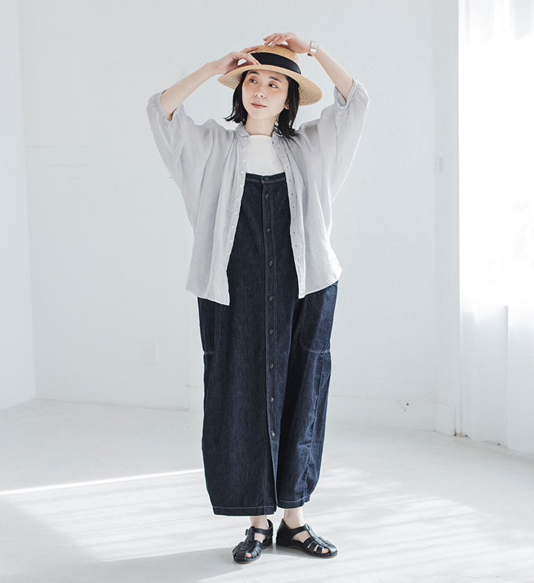ボトムスとのバランスも取りやすい、ほどよい着丈。さらりと着るだけで、自然に整ったシルエットが楽しめます。