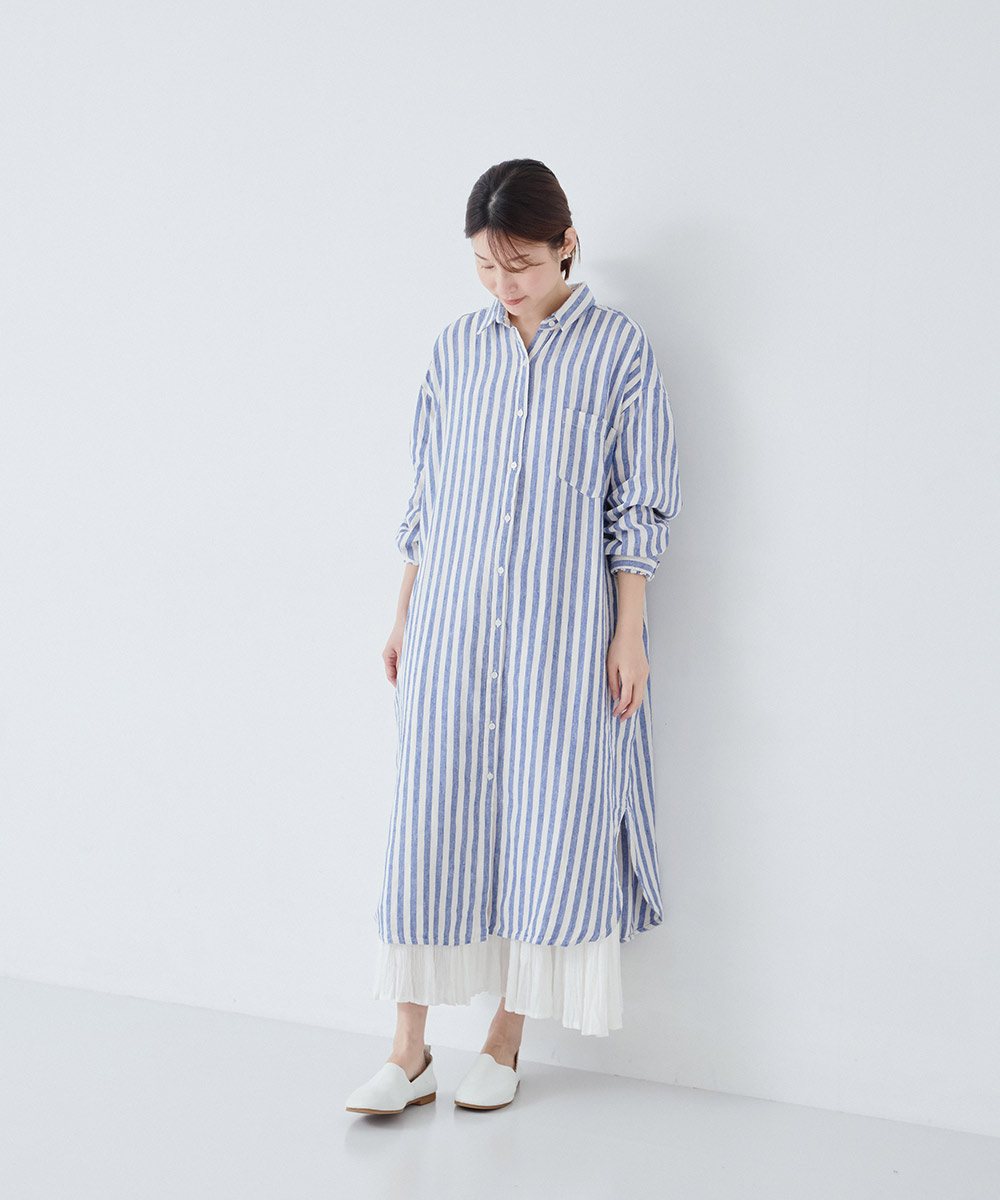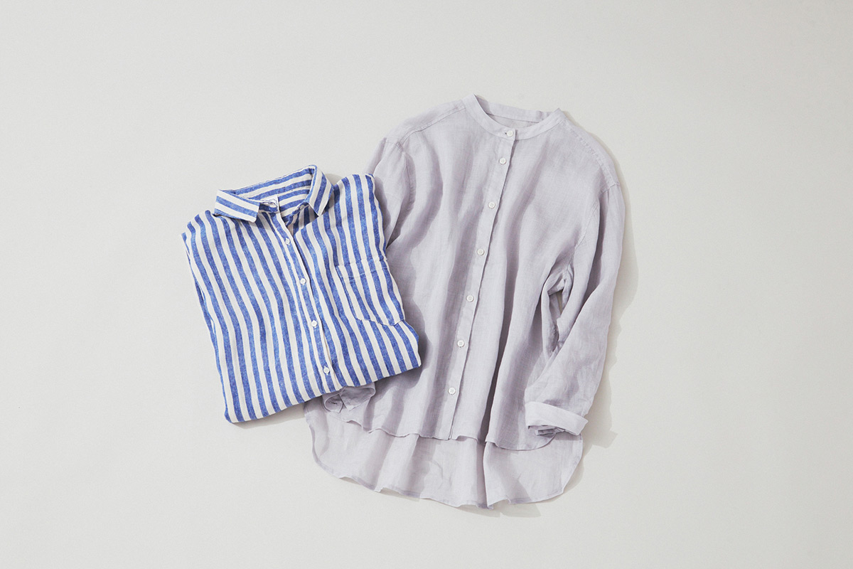 「ナチュラルな中にもほどよいハリをもつリネンのシャツは、大人の装いにぴったりのアイテムです。