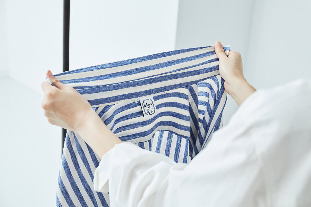 「ナチュラルなシワ感もリネンの魅力のひとつですが、シワシワすぎるのが気になる場合は、脱水時間を少し短めにして、全体を手でしっかり伸ばしてから干すようにすると、ちょうどいいシワ感が楽しめます」