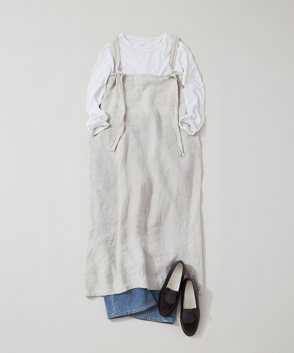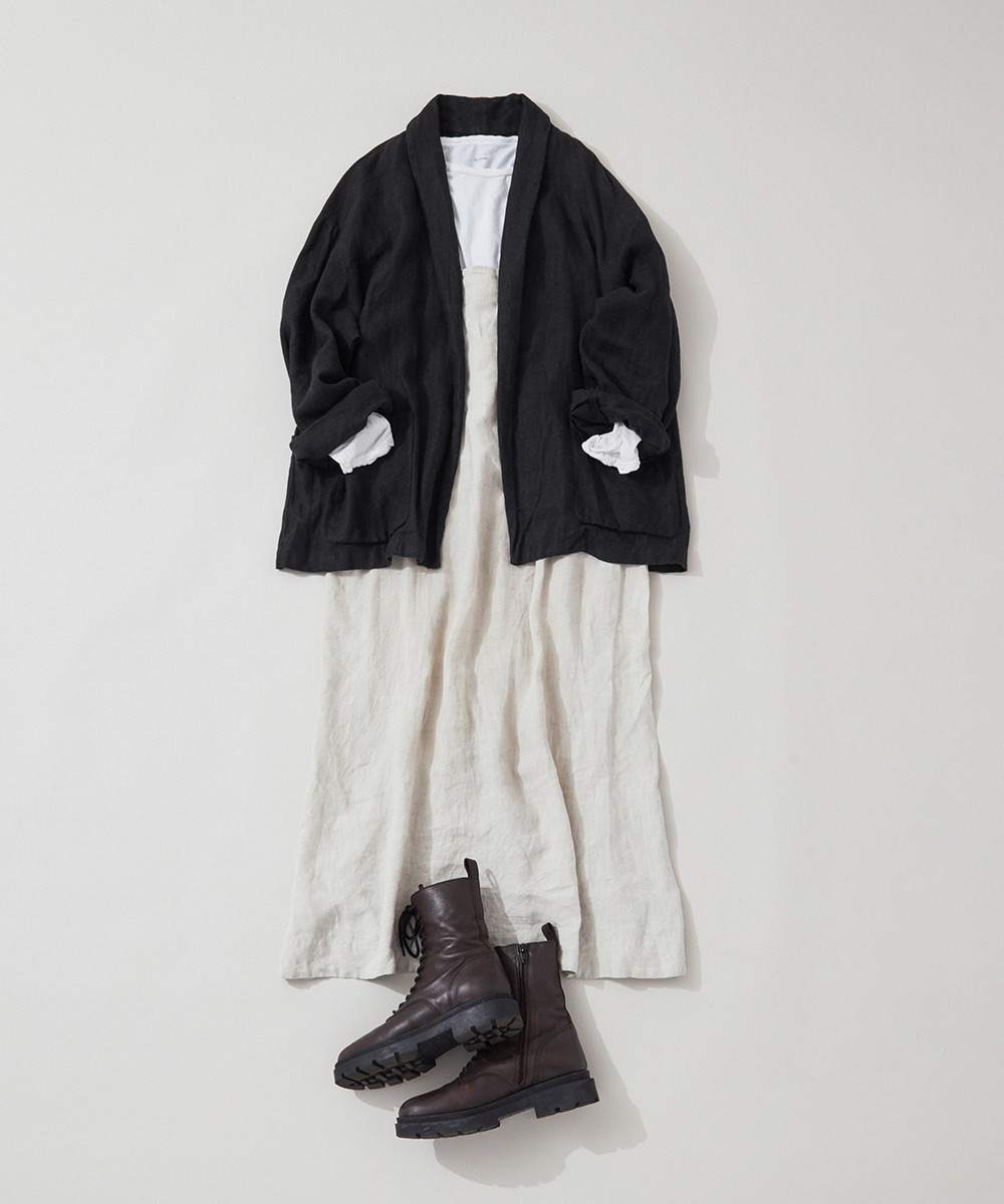 また、異素材との重ね着でおしゃれさがぐんとアップするリネンは、着まわしがとても楽しい素材でもあります。