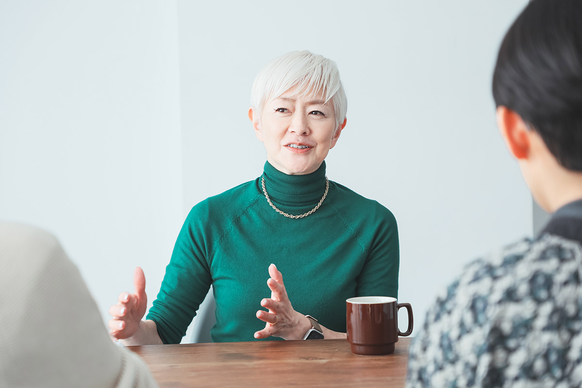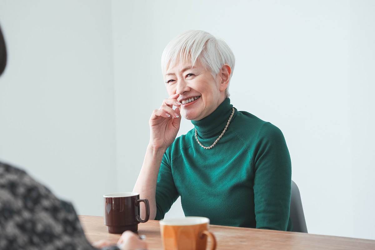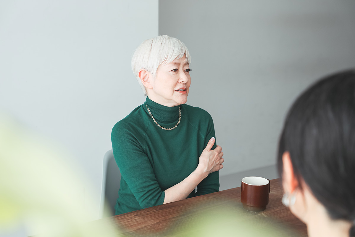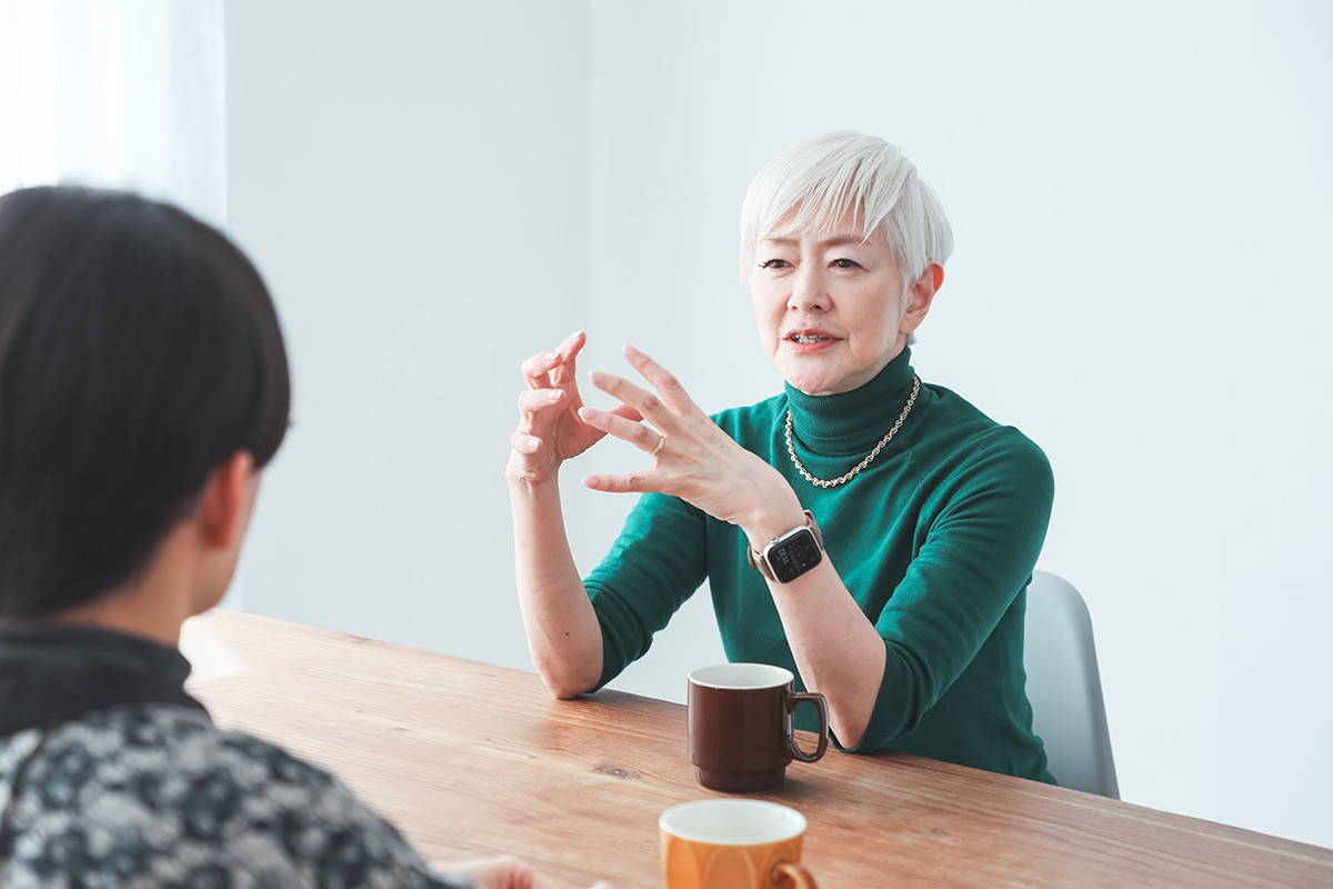 T:本日はお時間をいただきありがとうございます。先生のことは社内でお見かけして以来、なんて素敵な方だと、ずっと気になっていました。本日はぜひ、先生が素敵な秘訣にも迫れたらと思っています。