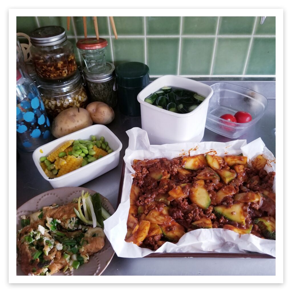 夏はたくさん野菜が採れるので、夜ご飯のおかずが時々自給率100%になりテンションがあがる。