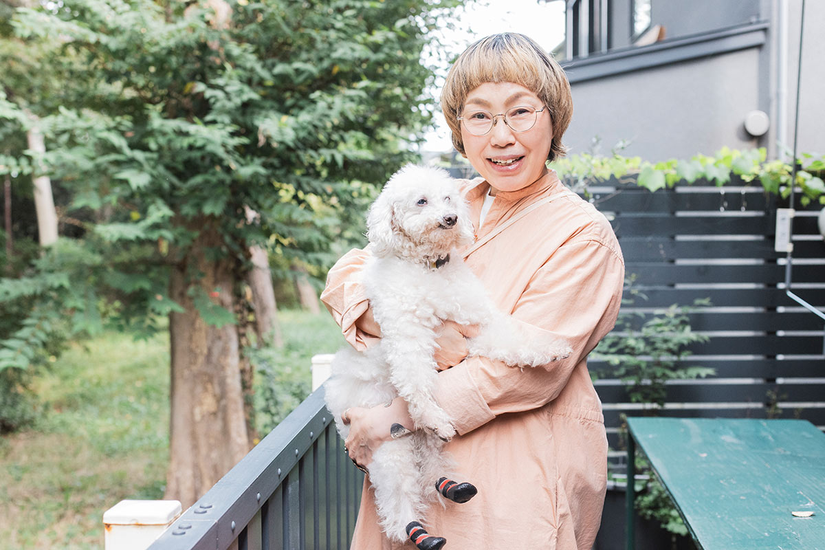 ▲保護団体でボランティア活動もするマナさん。現在預かっている保護犬のイチゴはもう5年以上、生活を共にしています。マナさんが最初に「色」を意識した記憶は幼稚園のころ。外国の文化やファッションに触れる機会があったことが、感性を育むきっかけとなりました。