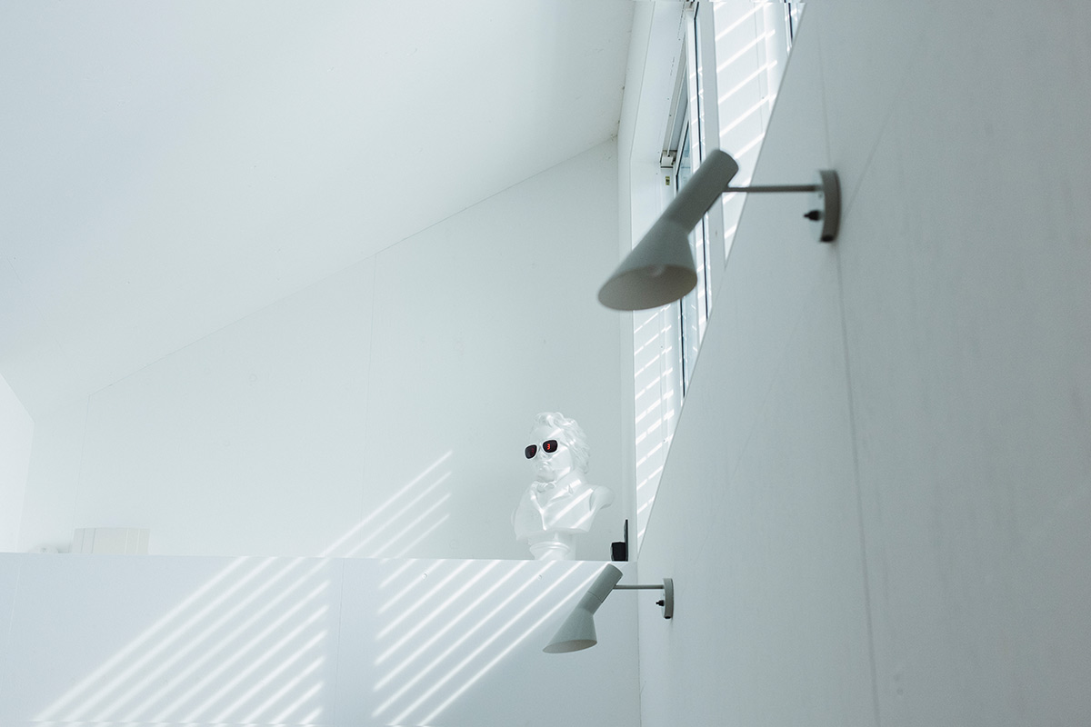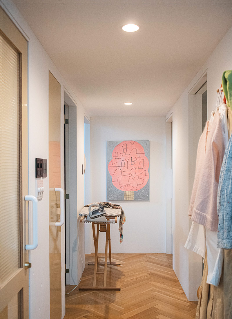 我が家の南側は隣家と近いため窓が少なく、白壁の面積がたっぷり。だから飾ろうと思えばいくらでも飾れてしまうんですが、あえて壁にはなにも飾らず、余白部分をつくっています」