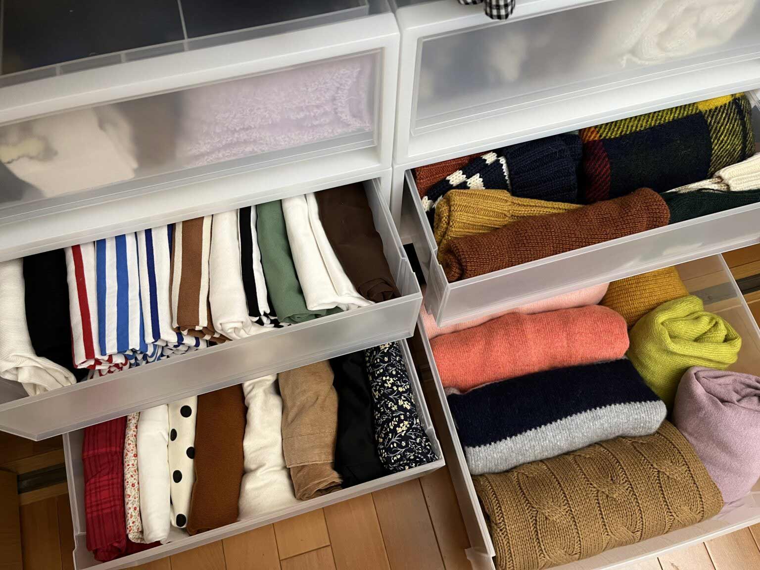 今は、服を購入しても、全体の量が増えないよう意識しています。具体的には、収納ケースを増やすことなくしまえるよう、入ってきた服と同じだけ処分するように。