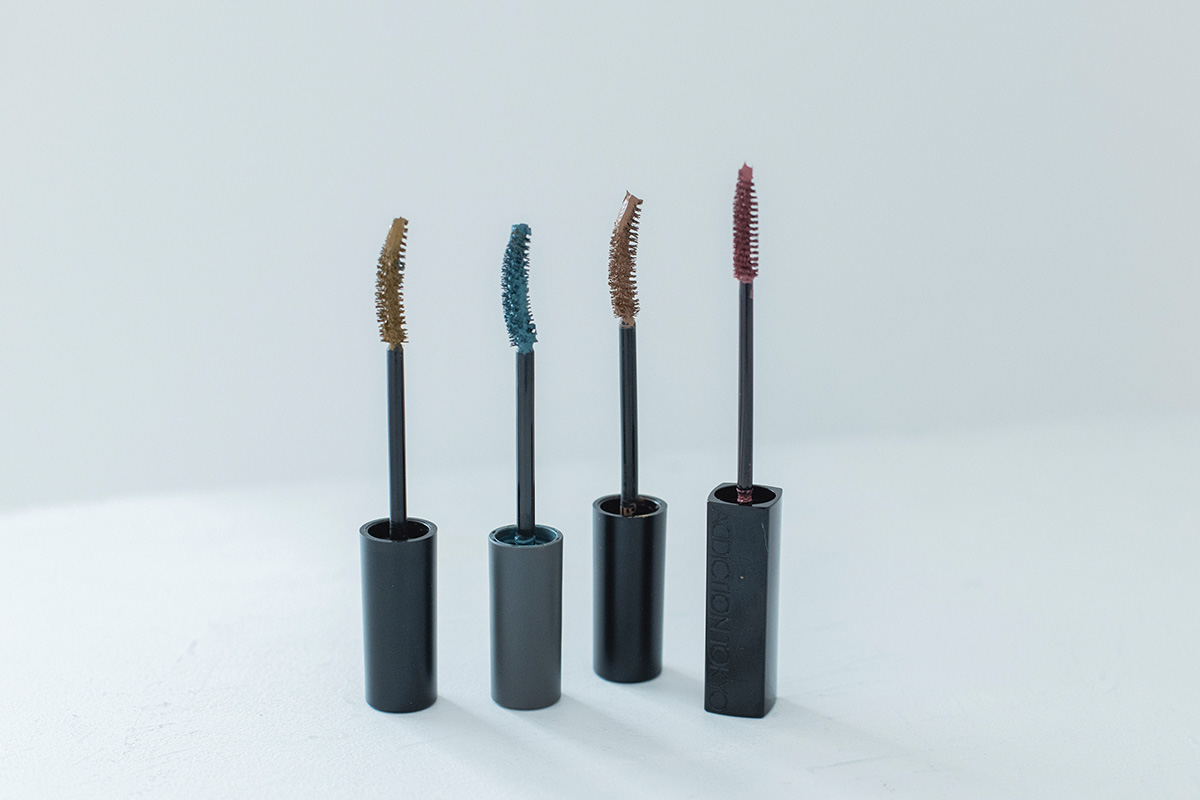 ▲左から、カラーリングマスカラcmo-03 moving on(アニヴェン)/ニュアンスボリュームマスカラ 07 Samayoi(オサジ)/カラーリングマスカラcmo-13 gold ocher(アニヴェン)/ザ マスカラ カラーニュアンス WP 012アッシーローズ(アディクション)植木さん: