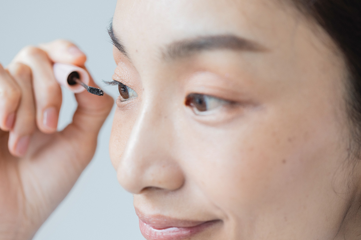 ベースメイクは最小限でも、カラーマスカラが彩りを与え、おしゃれな印象をつくってくれます」