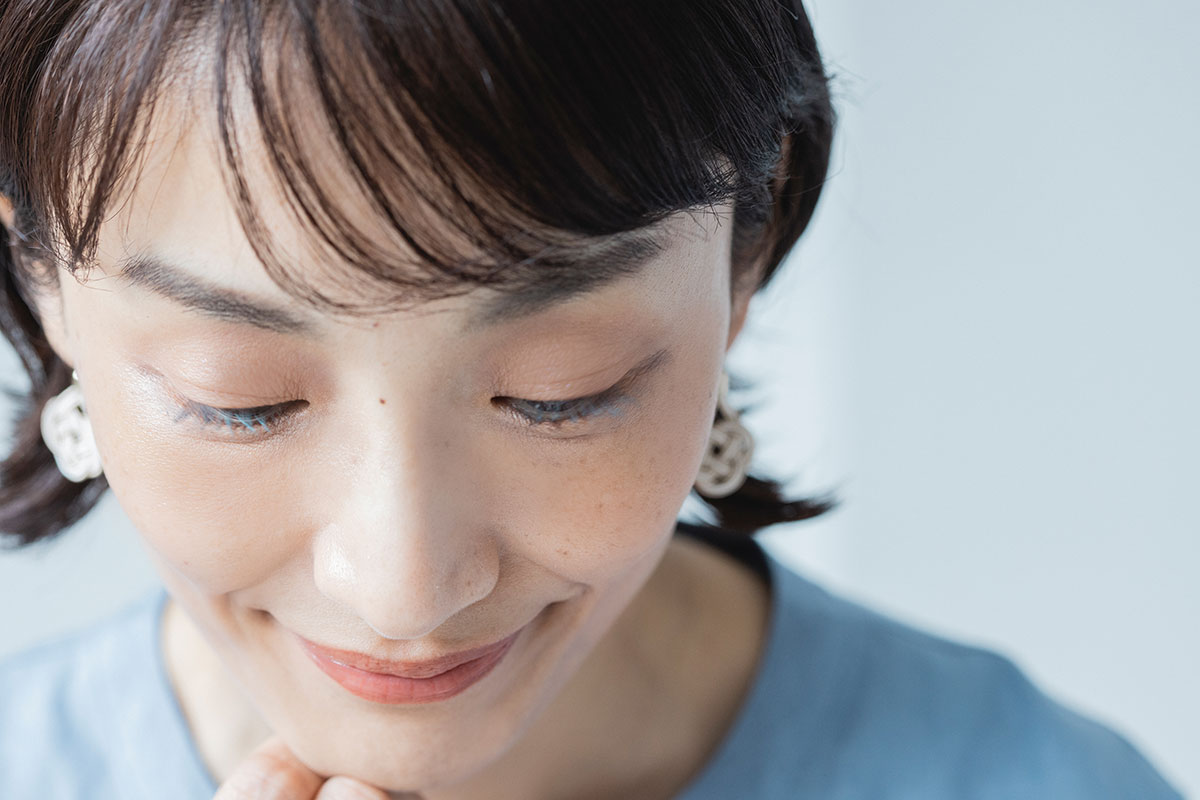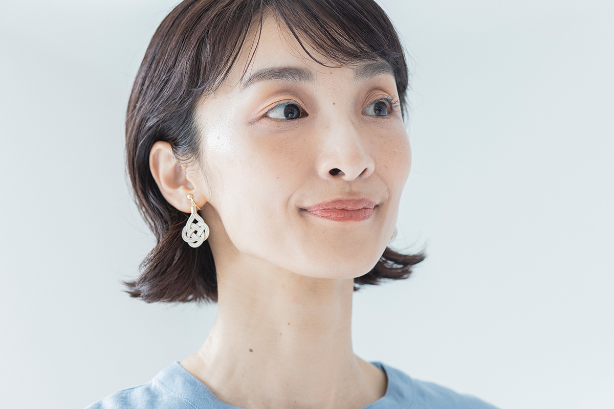 ▲イヤリング:あわじ結びイヤリング(ooie)、ブラウス:バンドカラーリネンブラウス(&yarn)第3話では、明るめリップの塗り方をご紹介します。