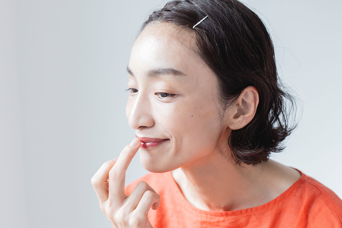 植木さん:「透明なグロスの上にリップを重ねると、発色が穏やかになります。よりナチュラルな雰囲気が好きな方や、明るめリップにドキドキしてしまう方にもおすすめの塗り方です」