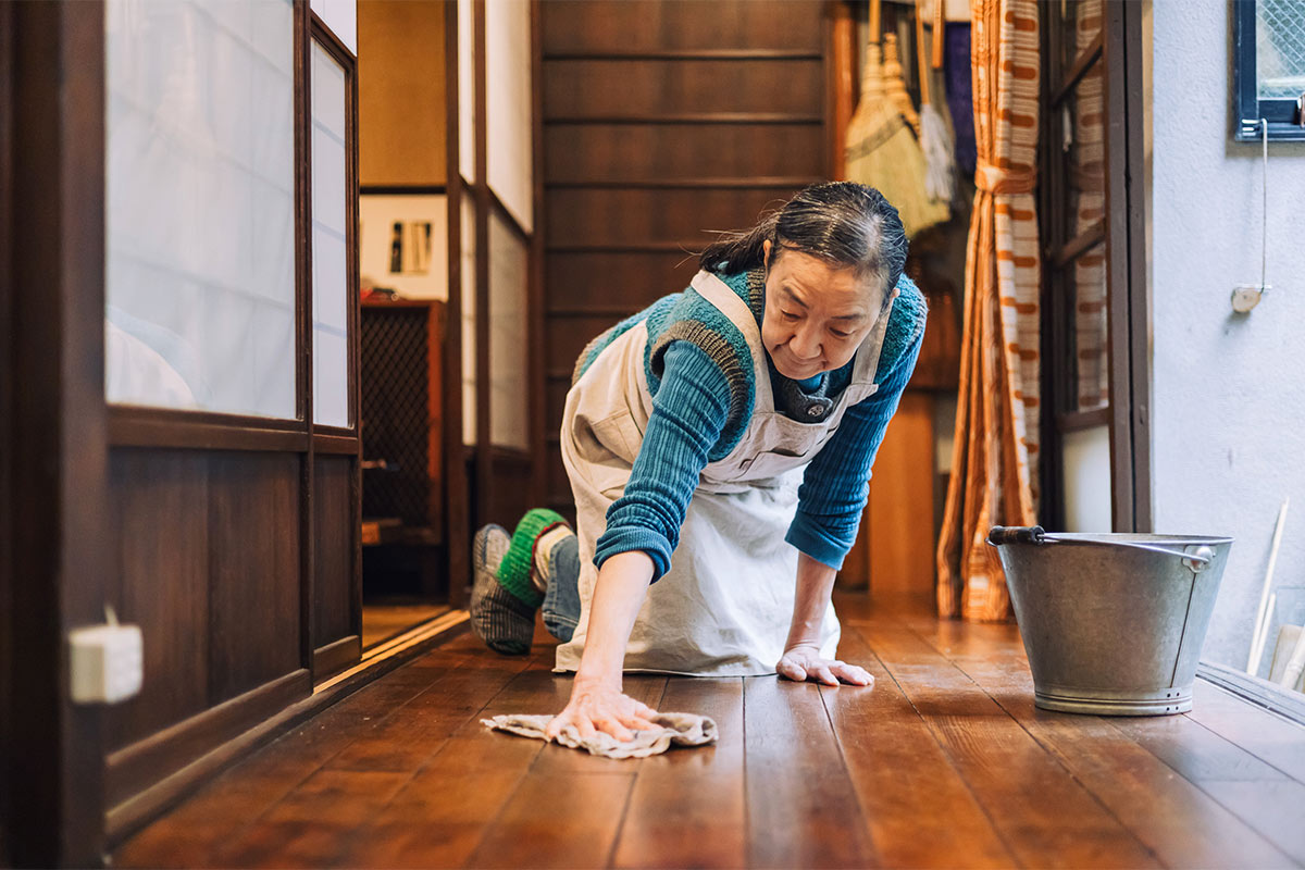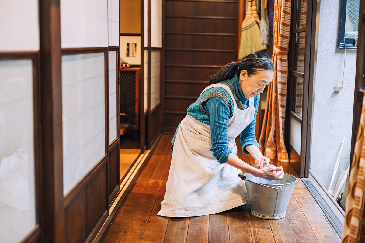 「去年亡くなったお姑さんは、掃除をとっても丁寧にする人で、ほとんど毎日家中を拭き上げていました。だから我が家の木は、拭き掃除を覚えているんです。私はそれをなぞっているだけ」