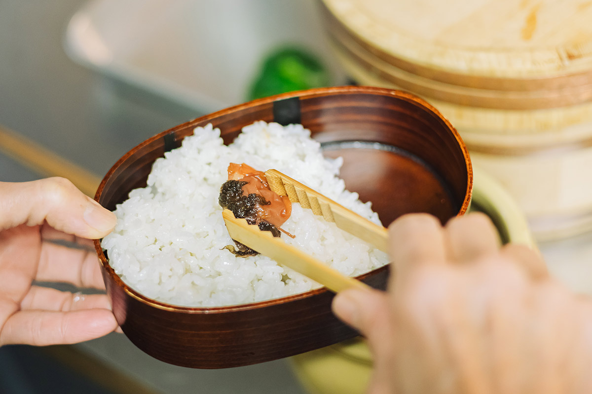 愛用しているすり漆のお弁当箱は松野屋でも人気の品で、お弁当を広げると自然と注目が集まってしまうんだとか。