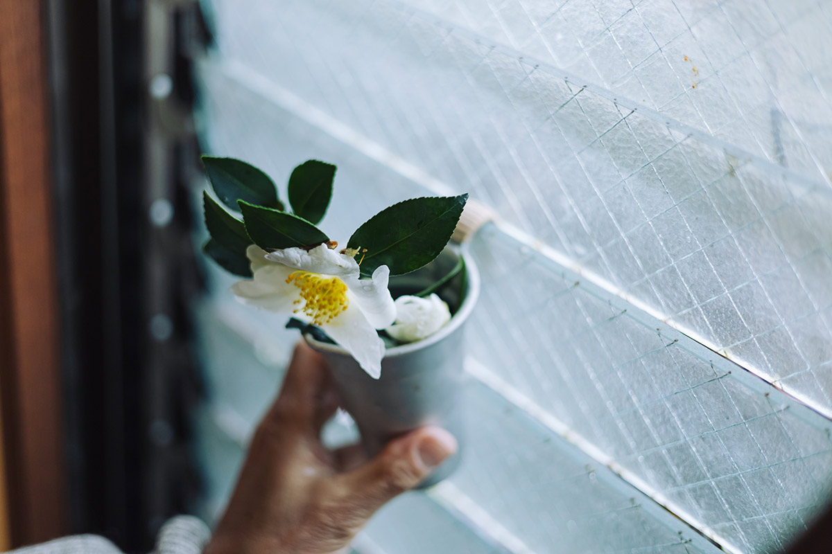 ▲アルマイト藤巻タンポ1合 ¥2,090取材中、松野家をふと見ると、視界の中には必ずといっていいほど、さりげなく生けられたお花がありました。