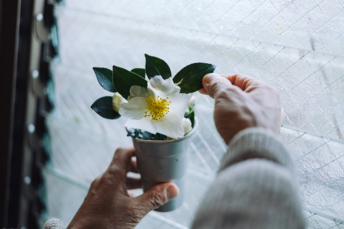玄関や棚、窓辺やテーブルの上、手入れされた空間を彩る花のしつらい。こんな楽しみを味わえるのも、しっかりとした衣食住のきほんがあればこそ。